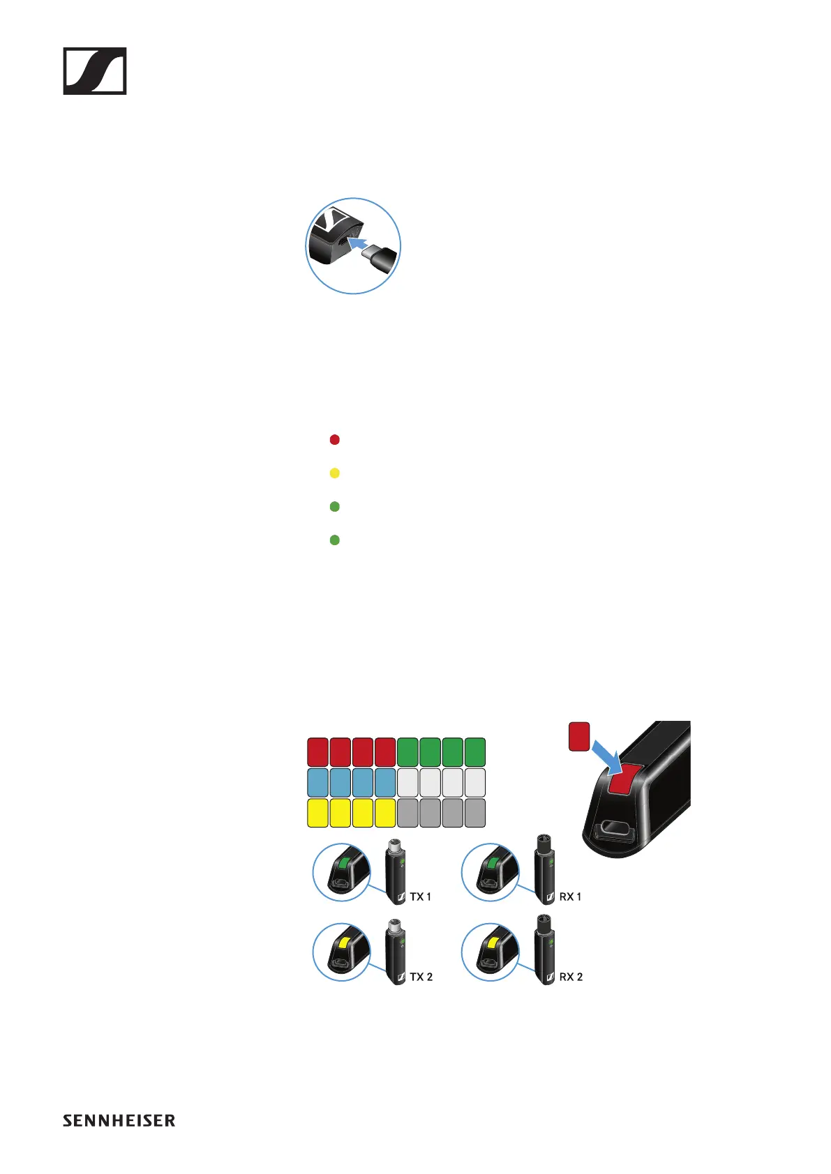 The status LED indicates the charge level.