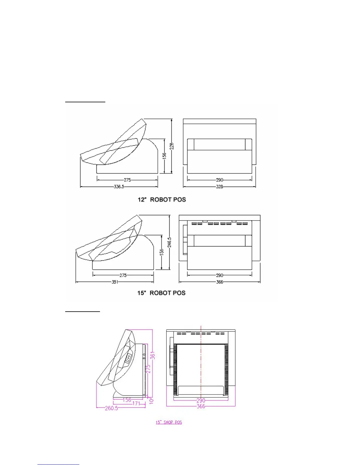 Senor Tech SHOP POS - Specification Details; Overall Dimensions and Physical Specs