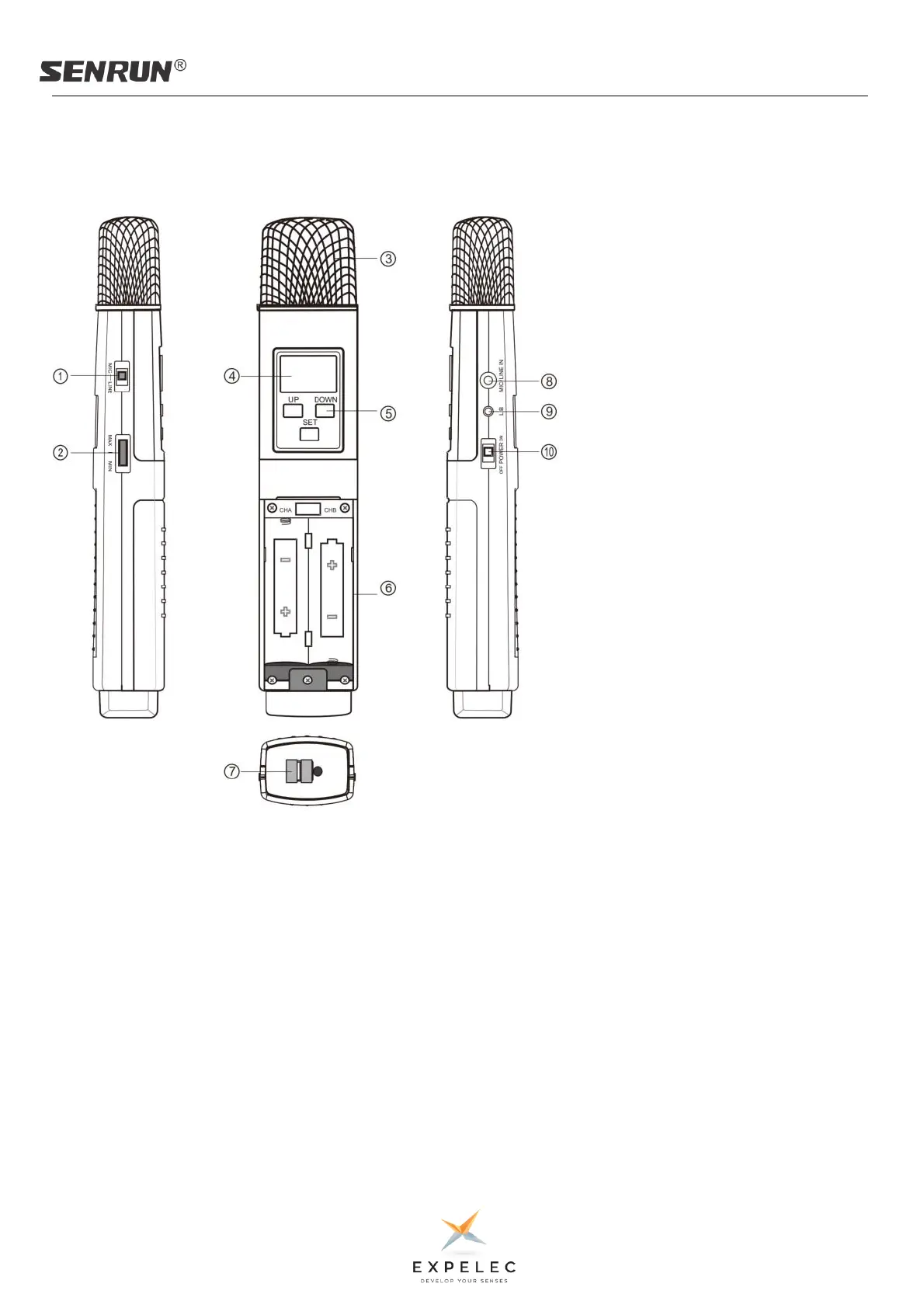 8. Prise de sortie Mic / Line in.