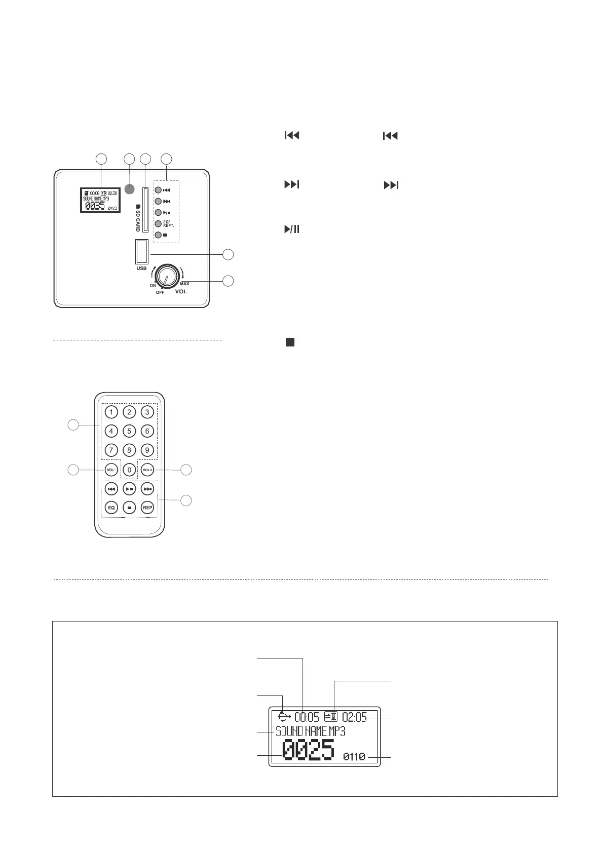 7. Numbers: selecting music, press number 2, the