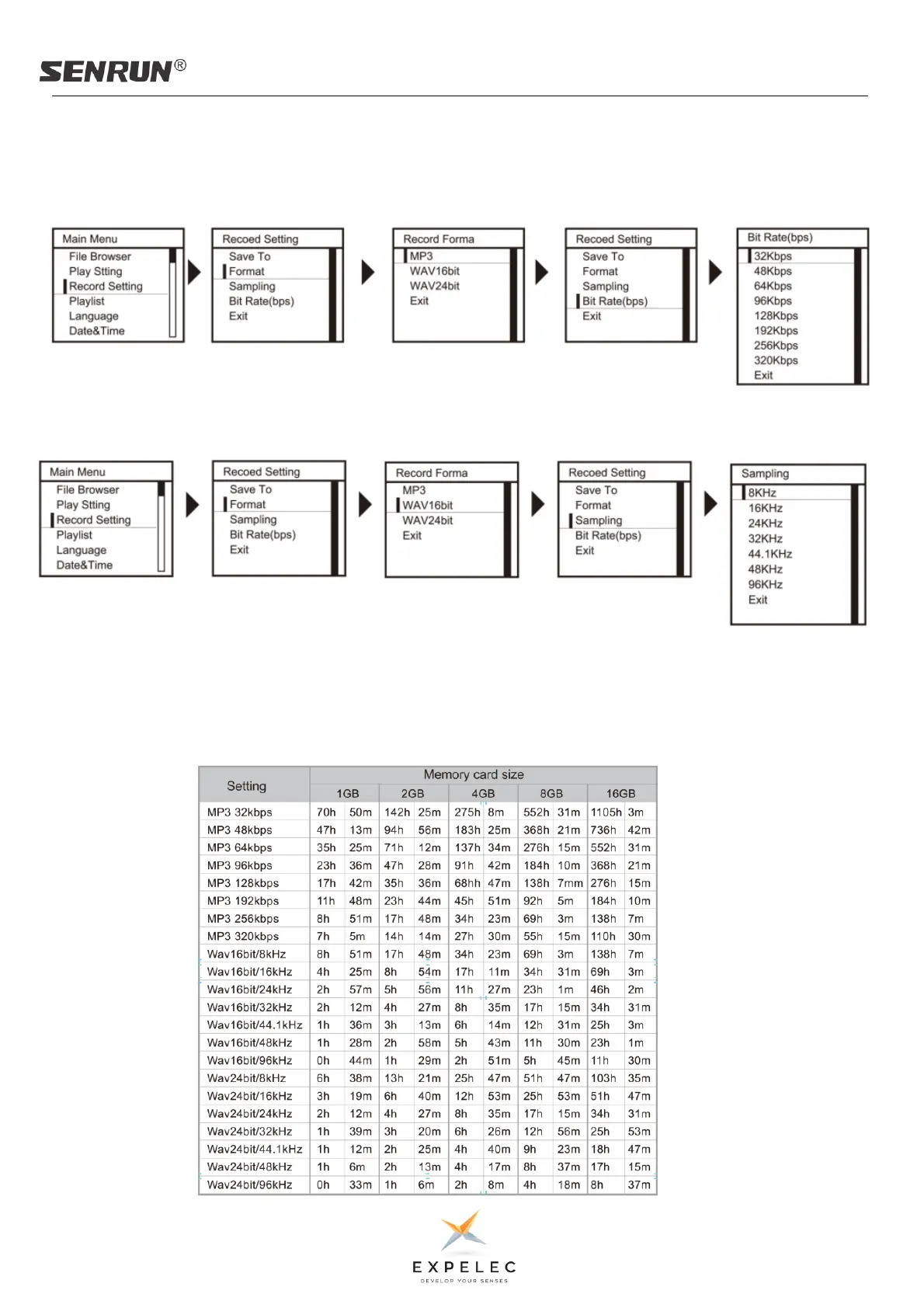 Remarque: le format d'enregistrement MP3 est en Kbps par unité. Le format d'enregistrement WAV16