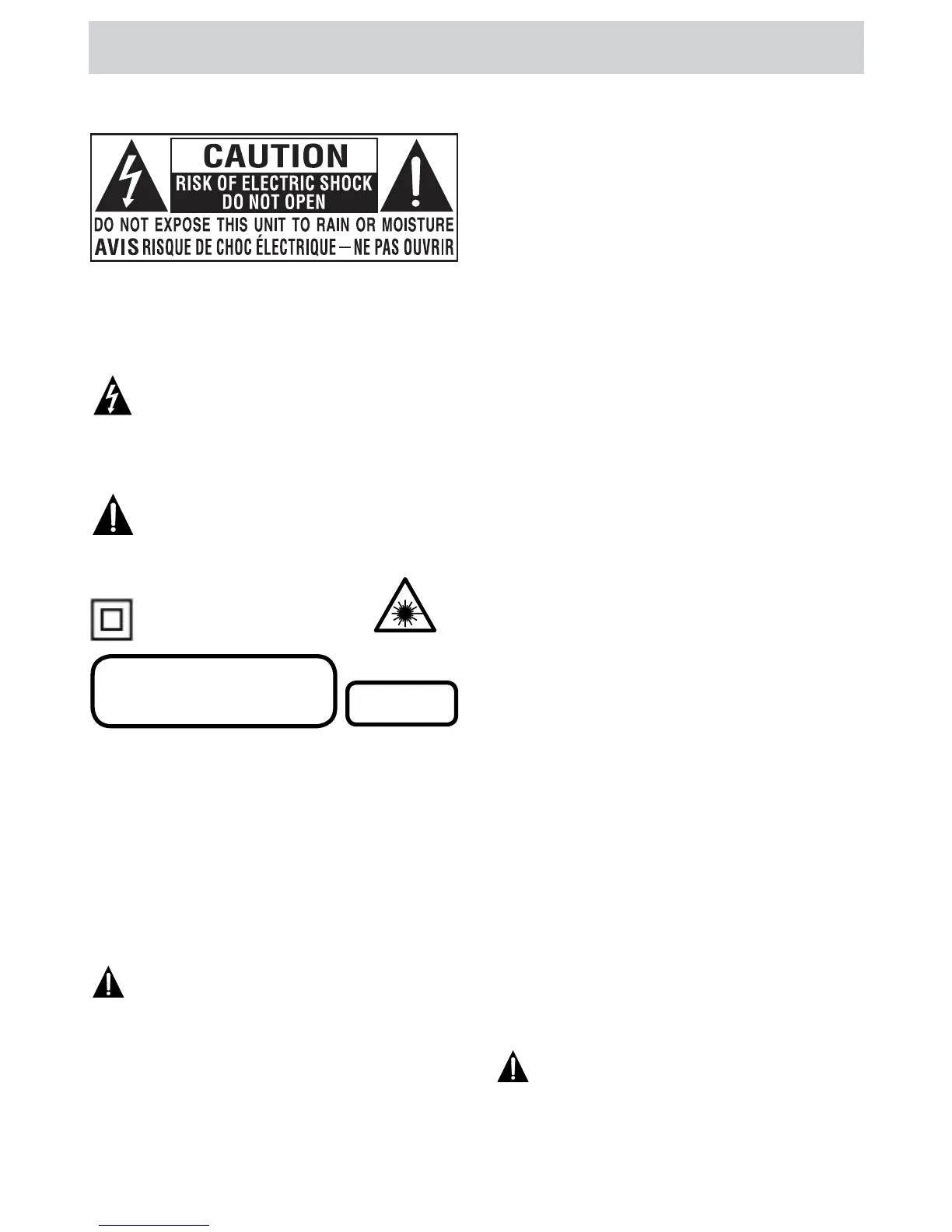 WARNING : TO REDUCE THE RISK OF ELECTRIC