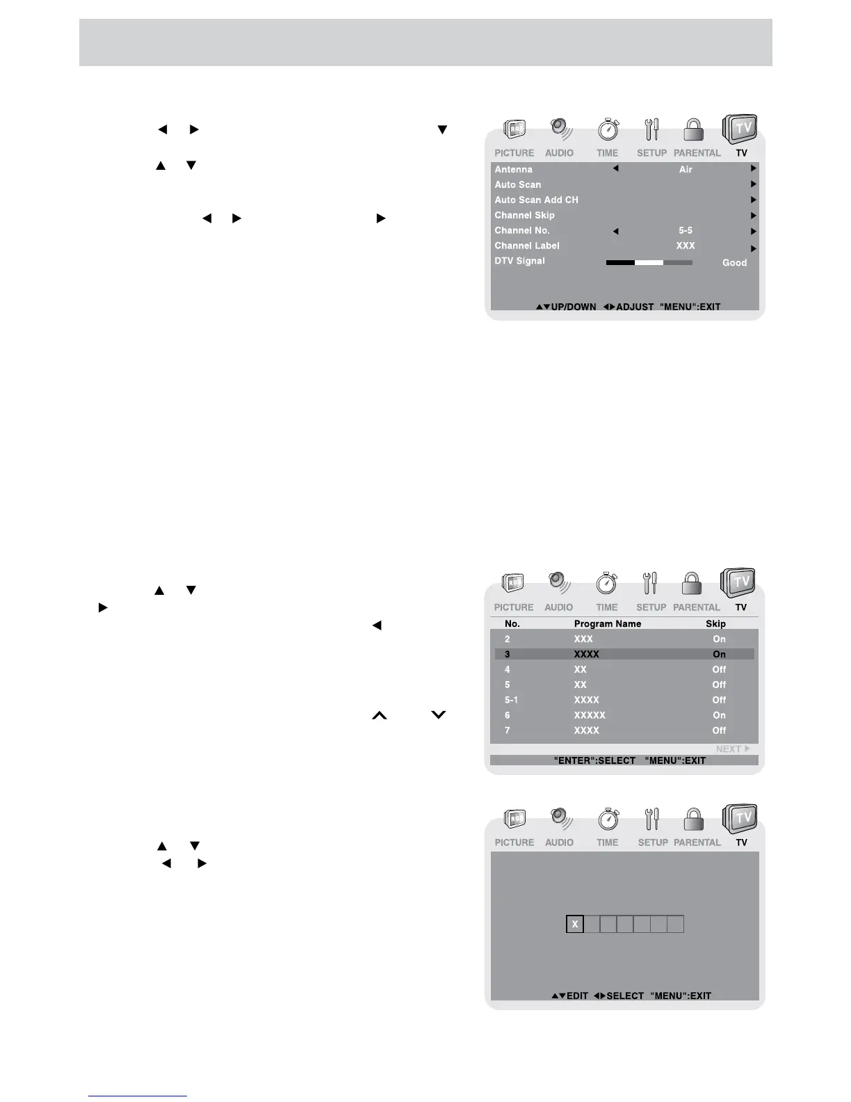 Auto Scan, Auto Scan Add CH, Channel Skip,
