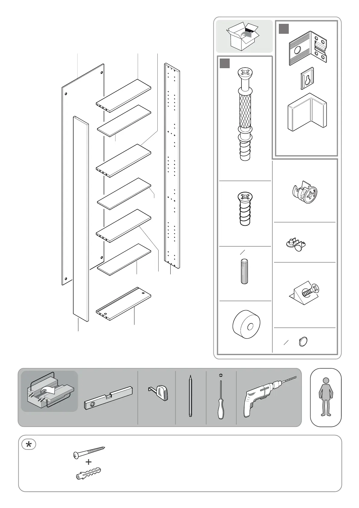 *Non-inclus. Utilisez les vis et chevilles adaptés à votre support.