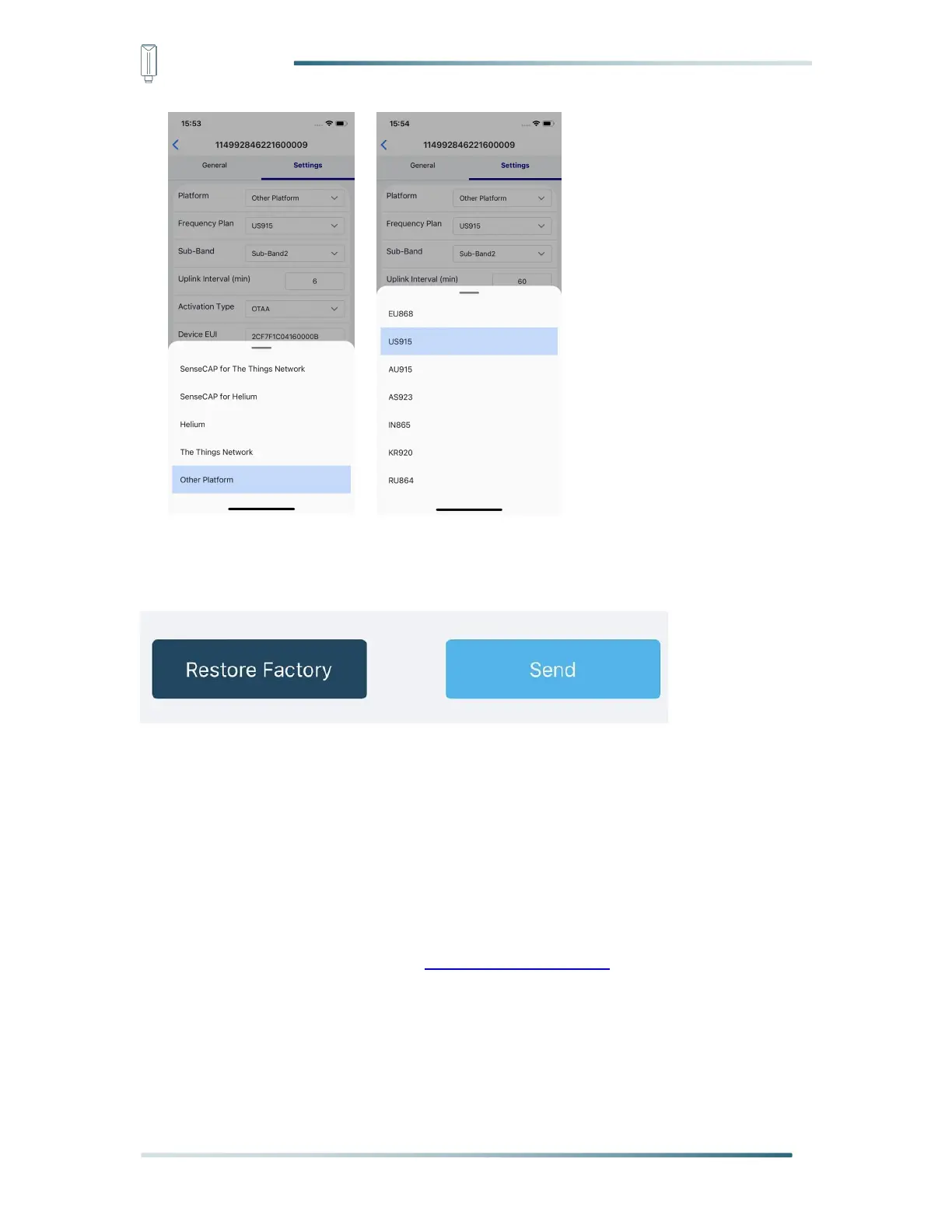 2) Select the Frequency Plan, if the gateway is US915, set the sensor to US915.