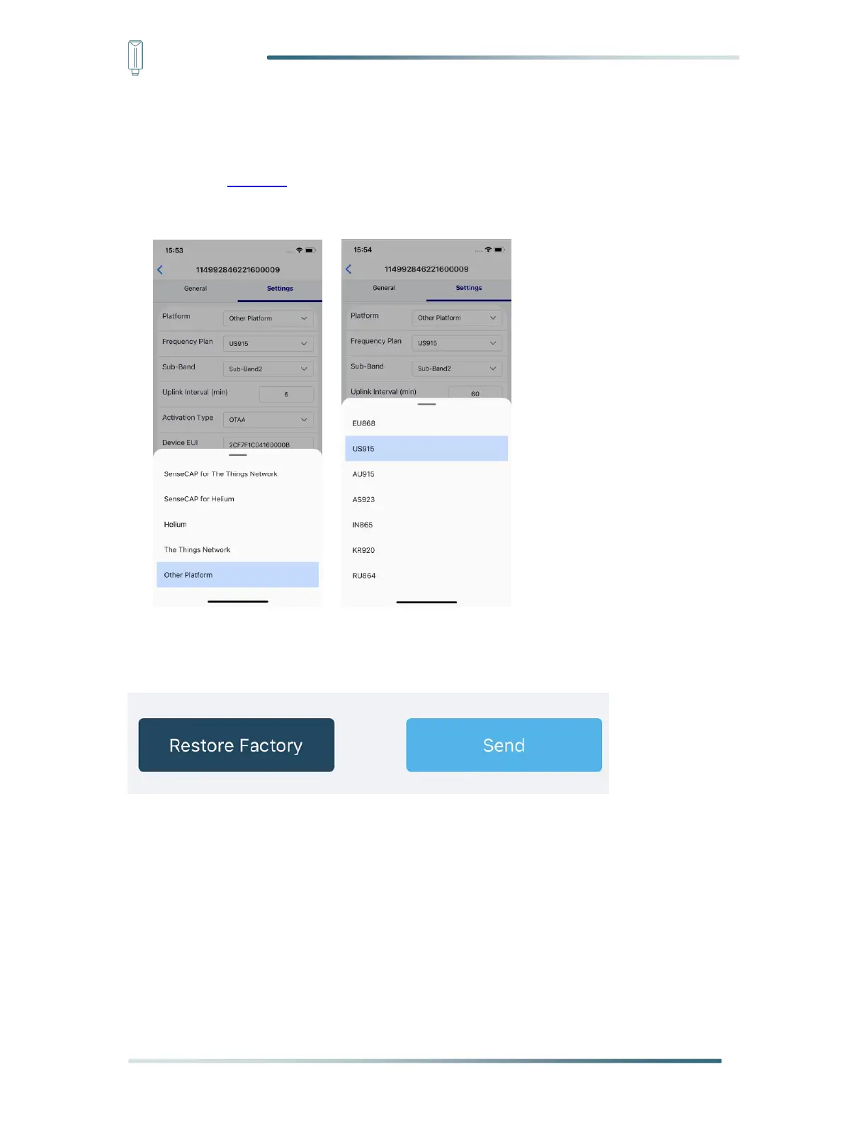 2) Select the Frequency Plan, if the gateway is US915, set the sensor to US915.