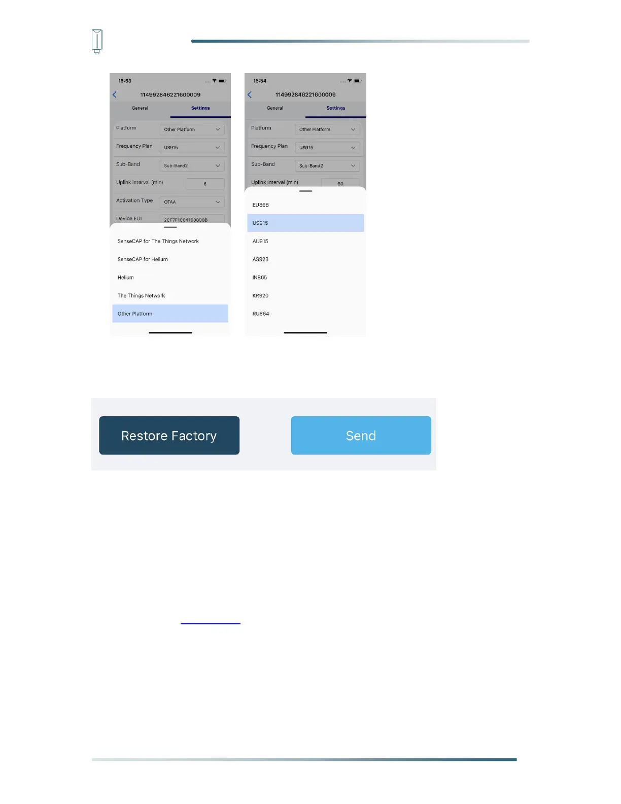 2) Select the Frequency Plan, if the gateway is US915, set the sensor to US915.