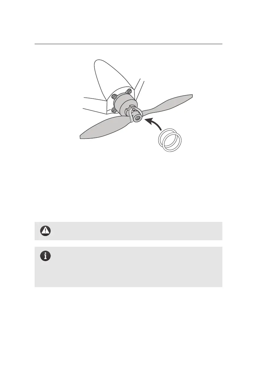 Mount the propeller on the motor axis. Secure the propeller using two attach-