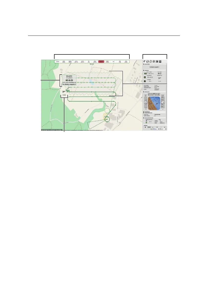 drone executes its flight. A small arrow and infobox show the speed and direction