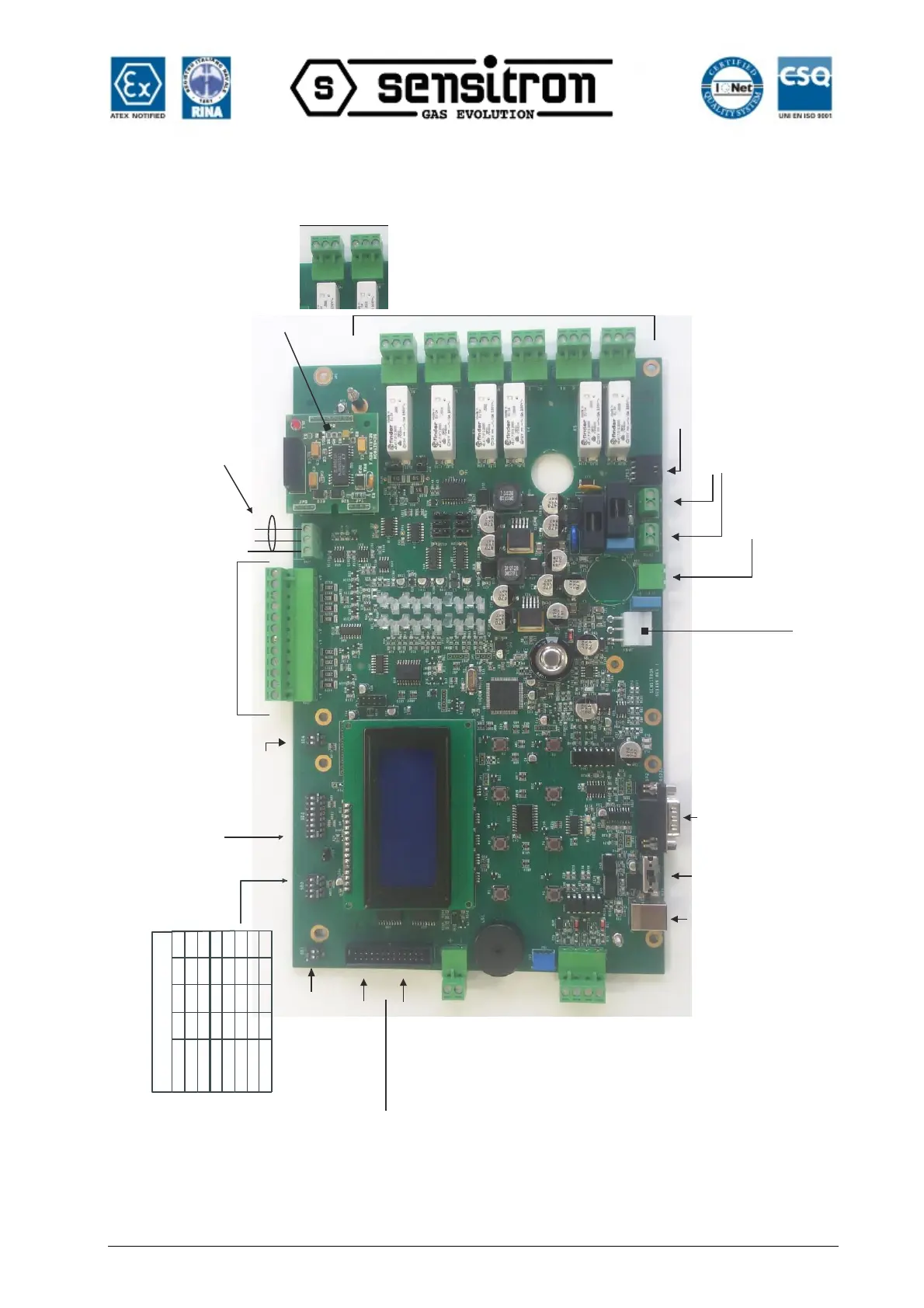 Dip switch settaggio (vedi tabella)