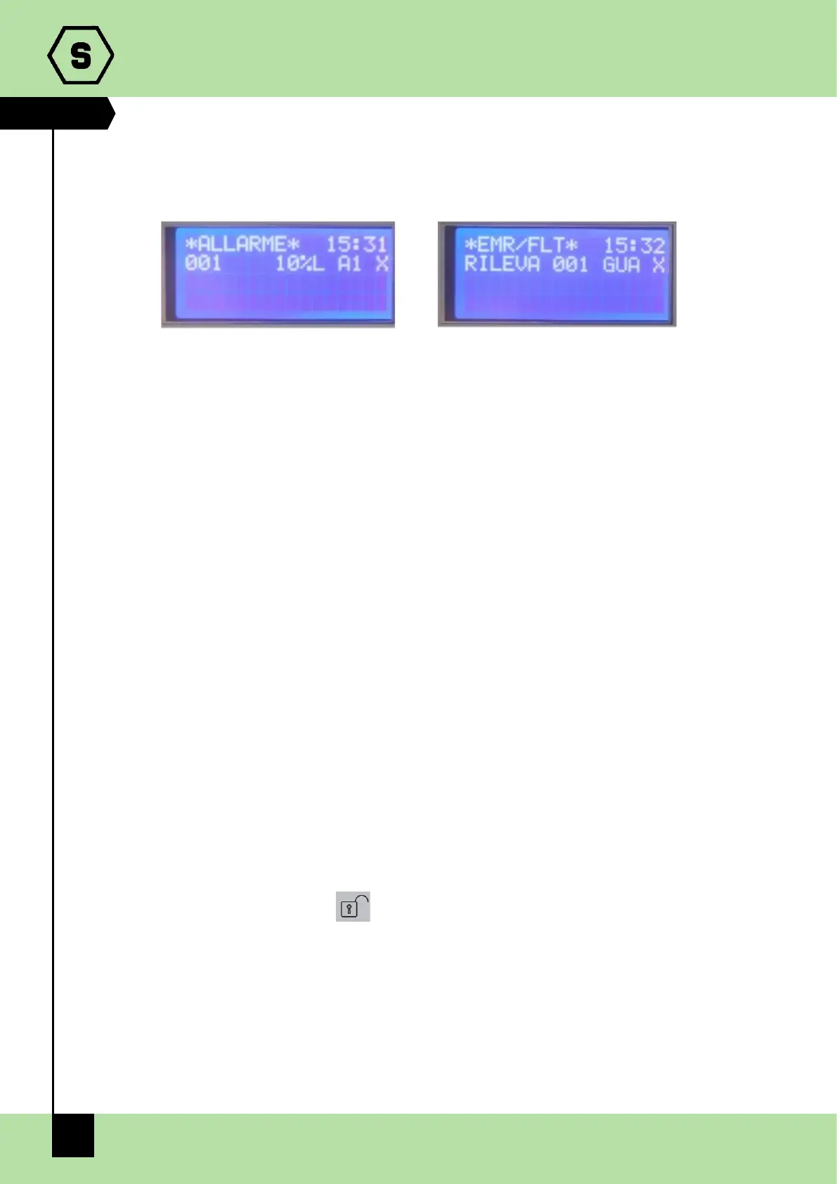 rilevatore gas ancora in Allarme), dopo la procedura di Reset, l’evento in essere apparirà