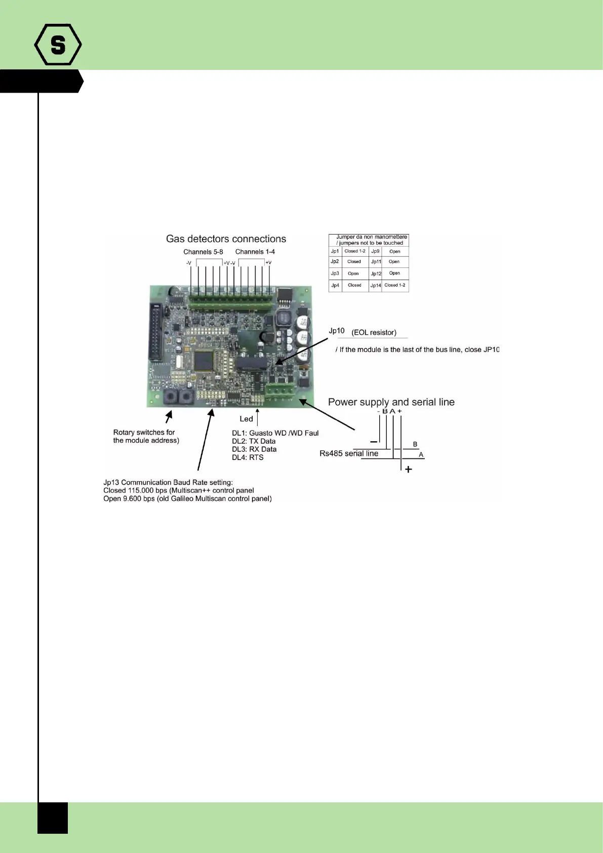 RS485 buses. They are used to connect 8 x 4-20mA analogue gas detectors. Each module