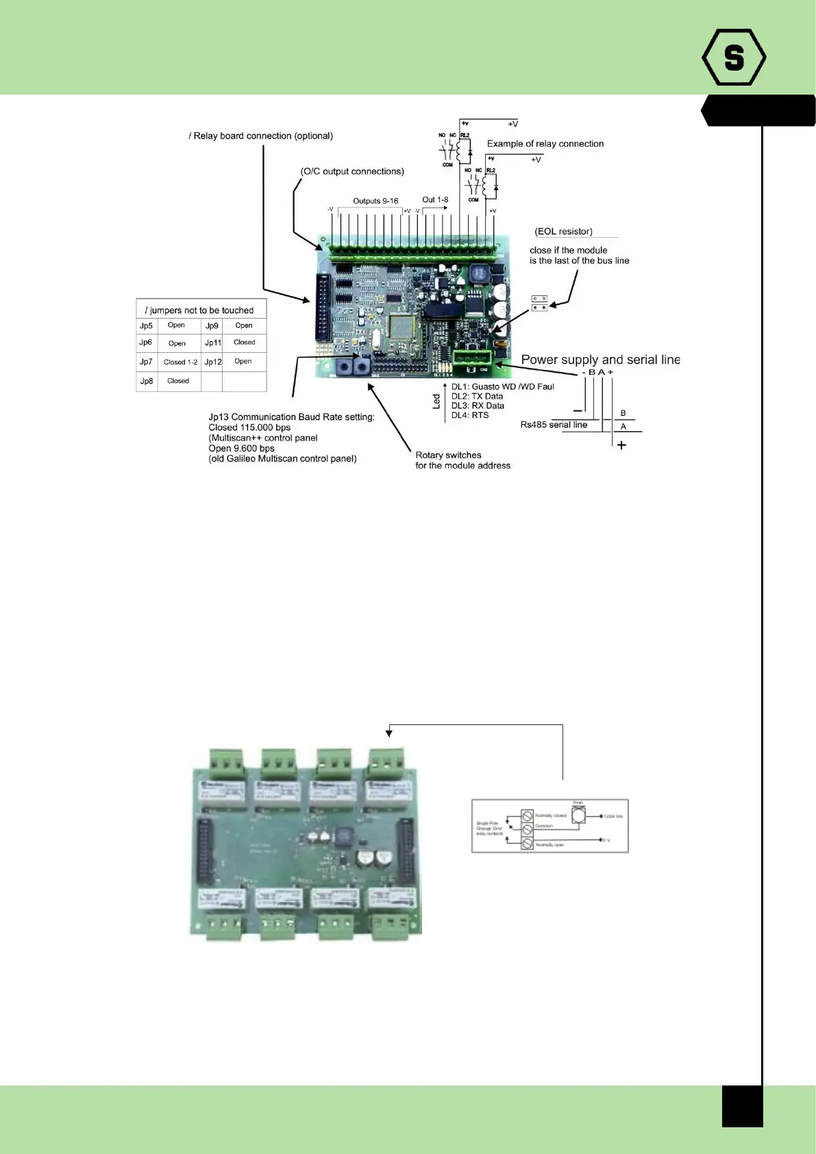 output module into voltage-free exchange contacts. Up to two relay boards can be