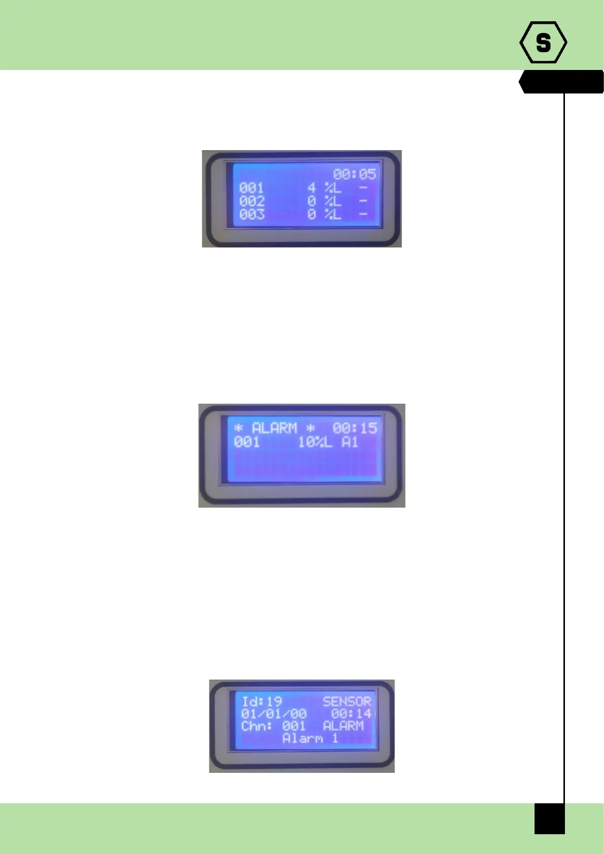 status displays the channels (gas detectors) with gas concentration measured in real time.