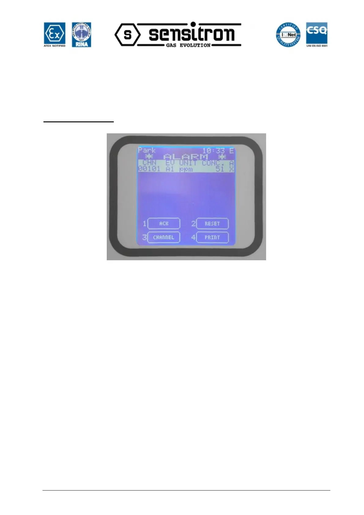 Fig. 3.2.1.b) Typical ALARM state of the ACTIVE EVENTS screen.