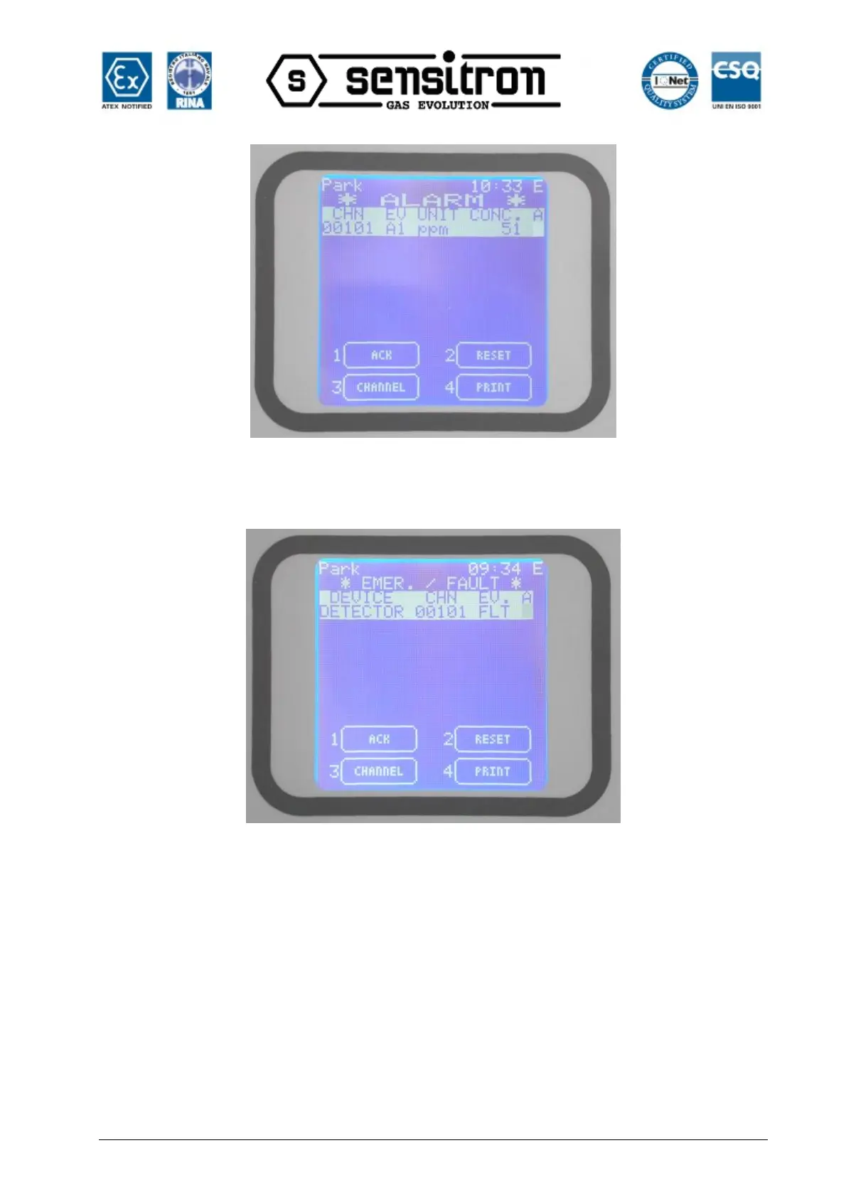 Until the event is acknowledged, the user cannot go back to the main screen. In the