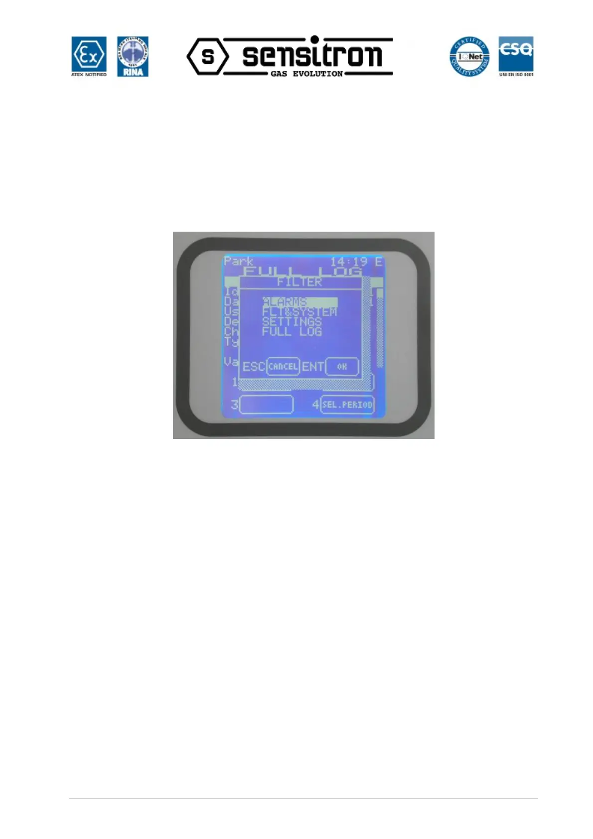 In any of the events screens, by pressing the key 2 Filter, it is possible to enter in a