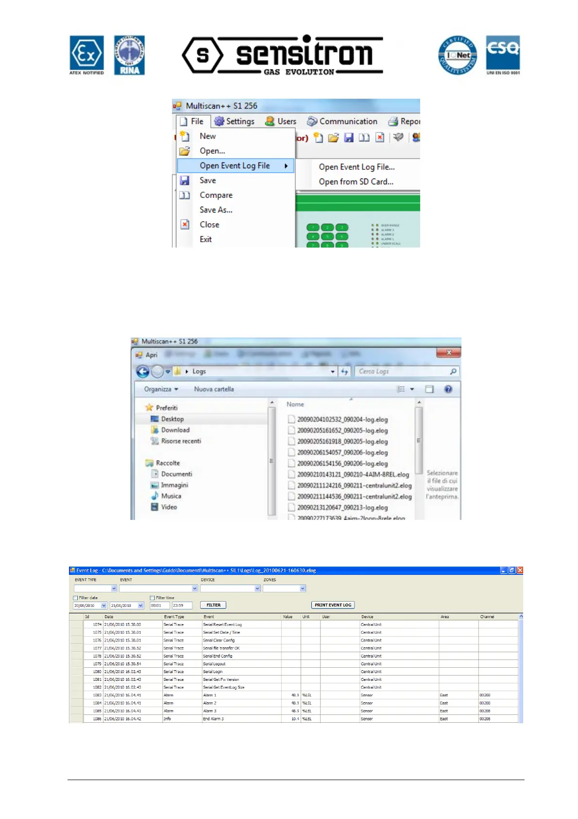 Fig. 4.4.1 c) Apertura di un file dello storico eventi