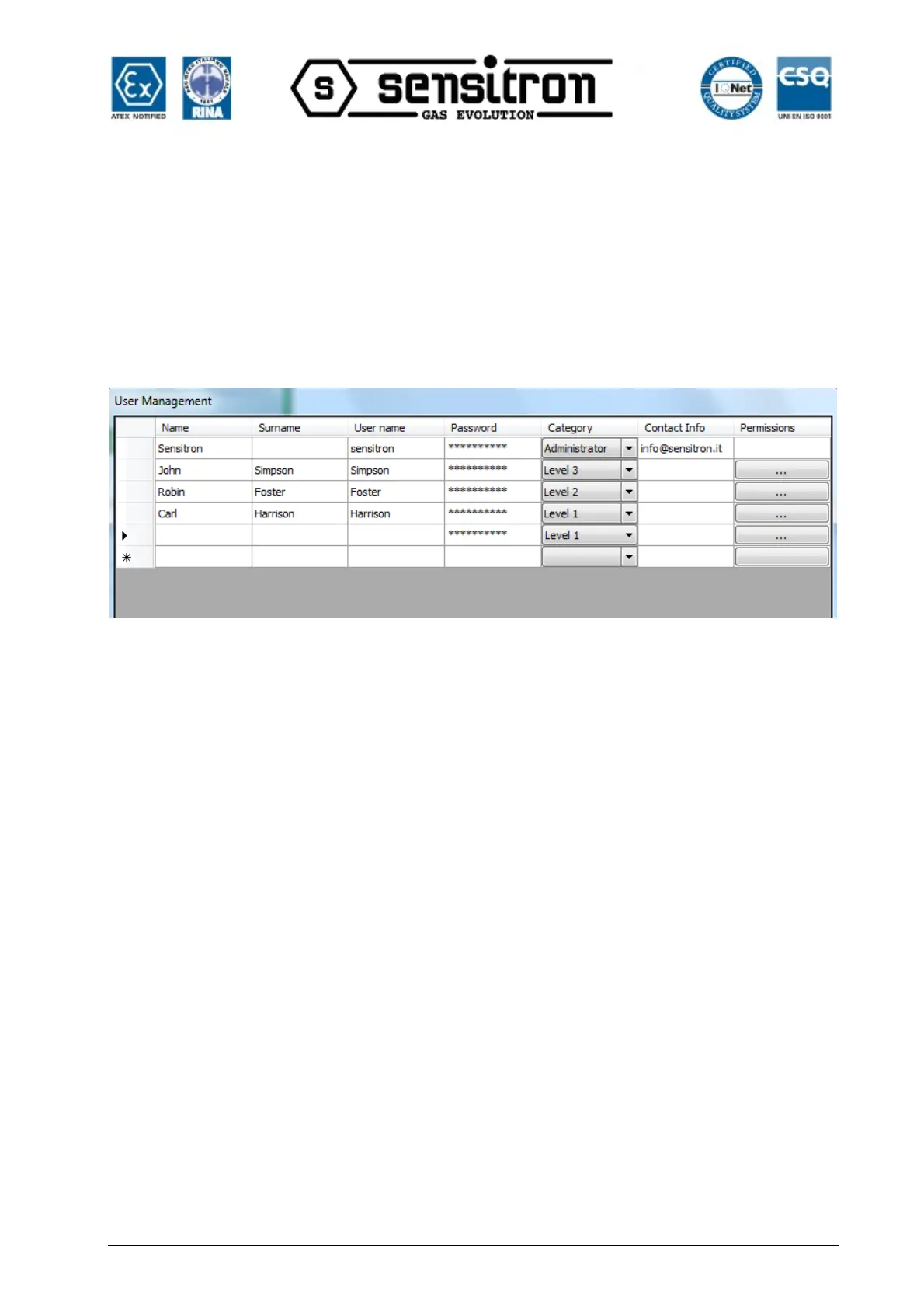 The first time the program is used after installation, the only user installed is Sensitron