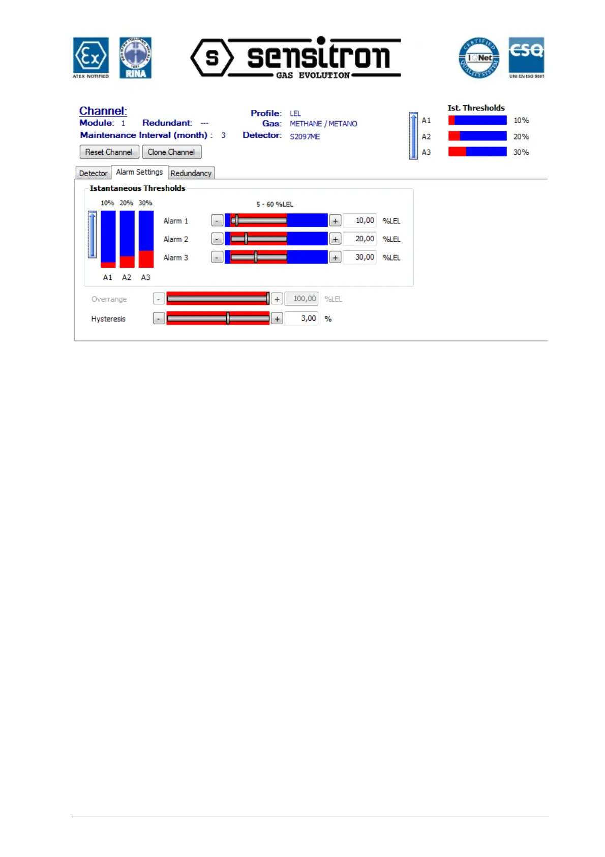 Fig. 4.5.5 e) Alarm levels setting screen