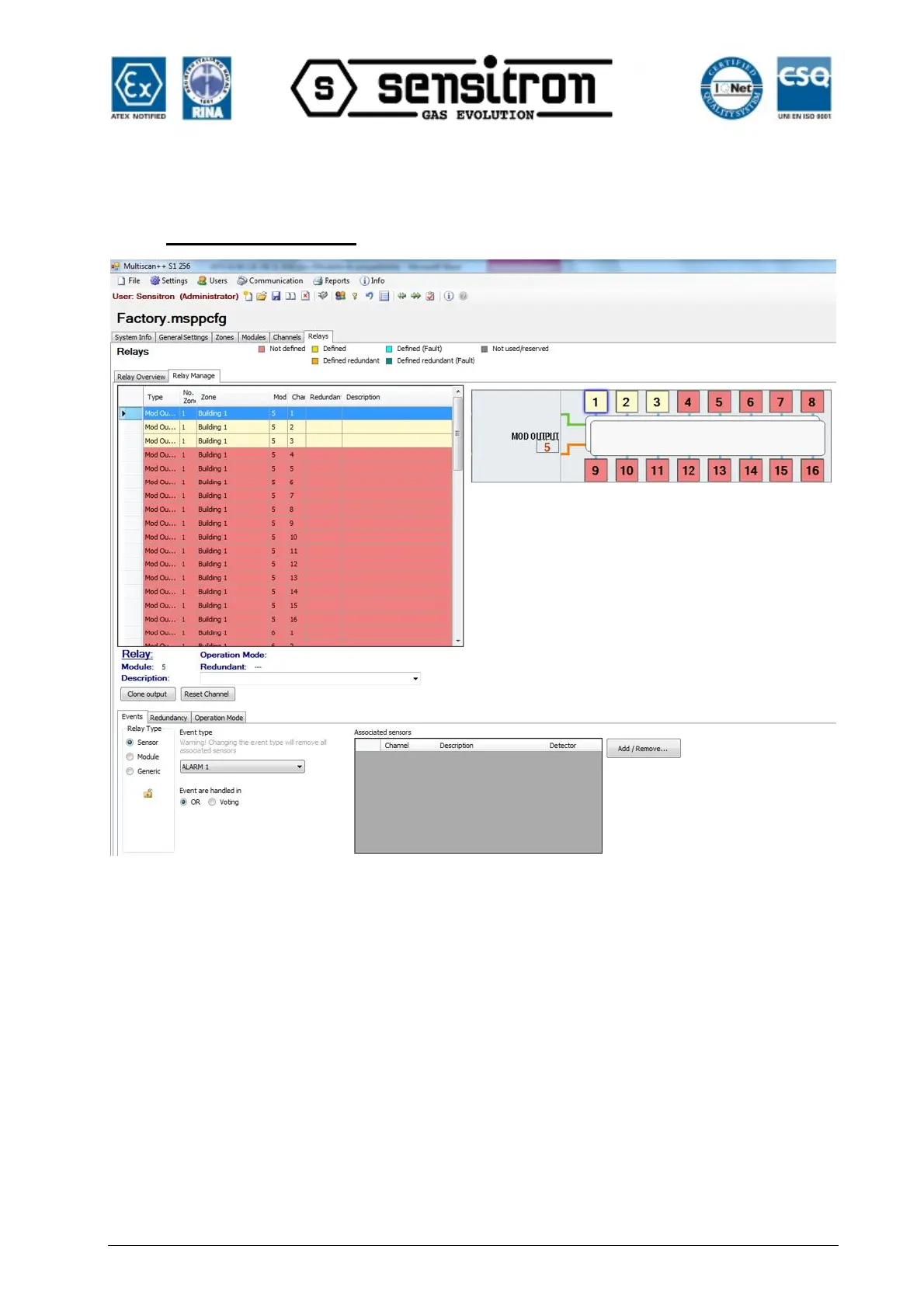 Relay Type Select if the output is to be activated by a Sensor event (alarm, fault,