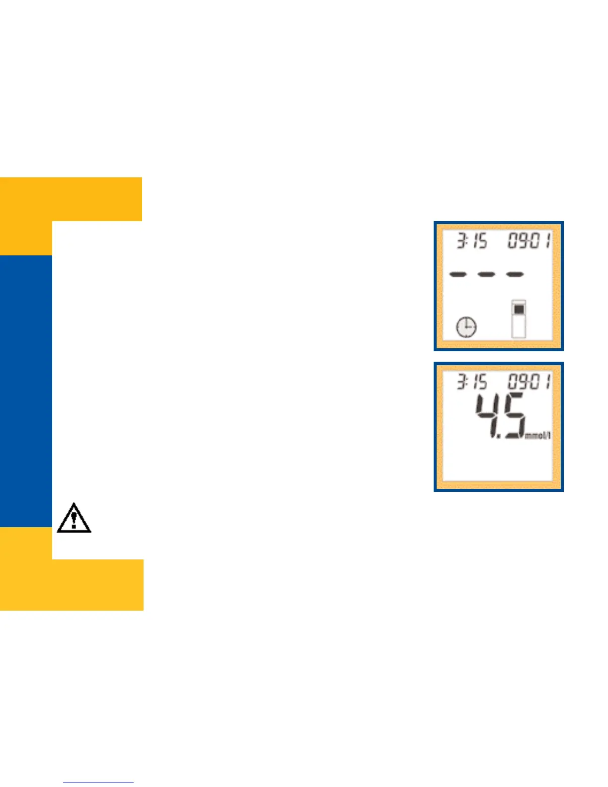 blood droplet reaches the strip. Flashing clock icon shows that the