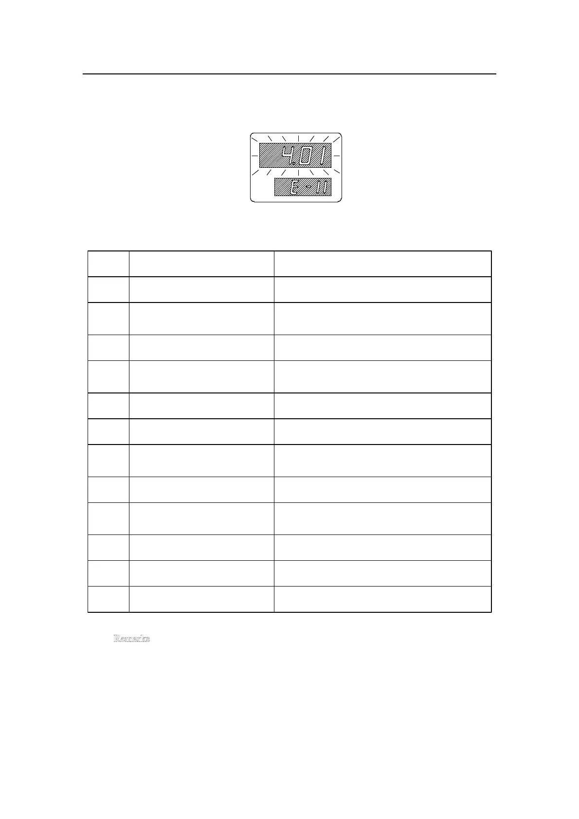 Each error code is shown on Set Value Display.