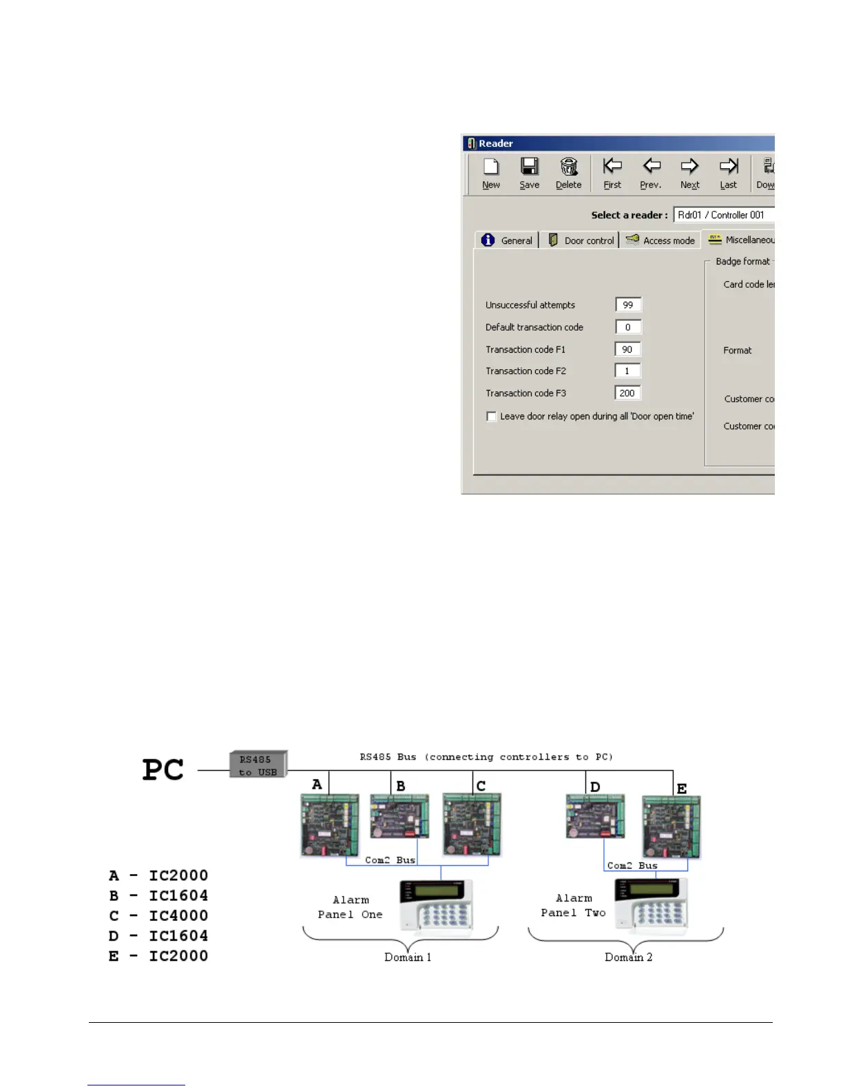 controllers are wired to the same bus; or several Alarm Keypad panels, where multiple buses are used, with