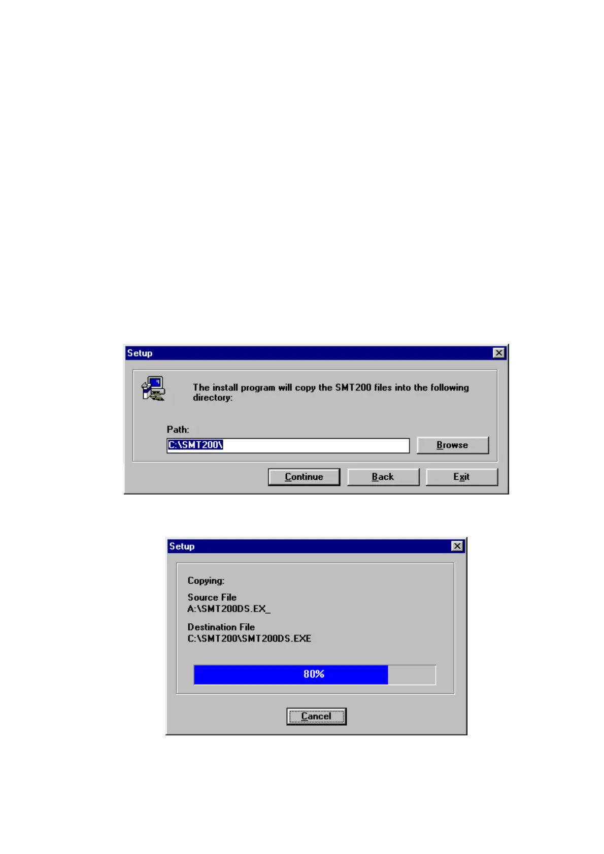 This is the preferred installation method (example shown is for a Windows 95 installation).