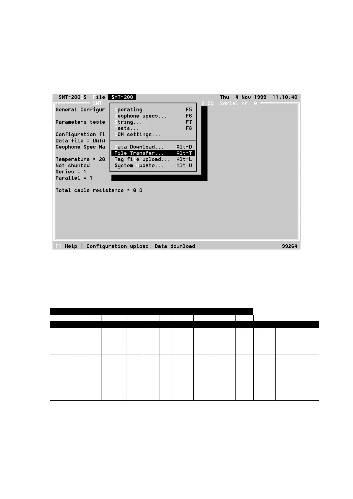SMT-200, File Transfer. The SMT-200 now downloads the data file to the PC.