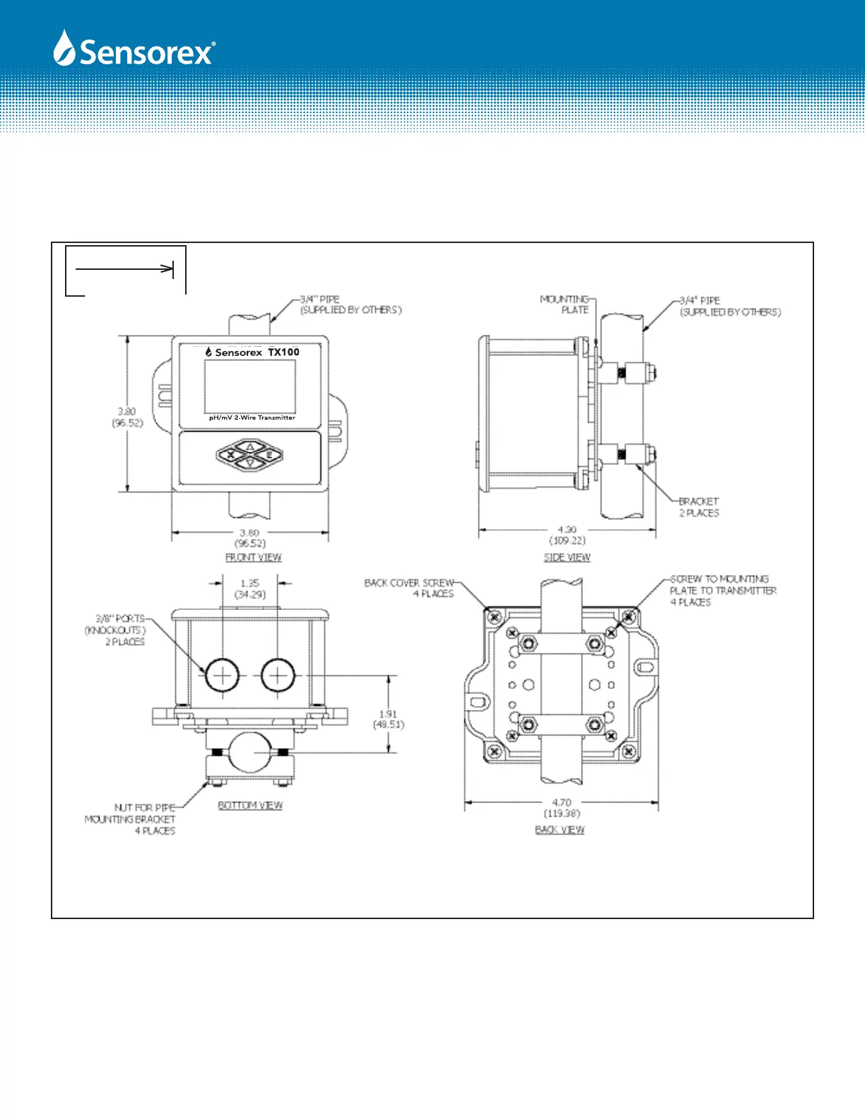 Sensorex TX100 - Pipe Mounting