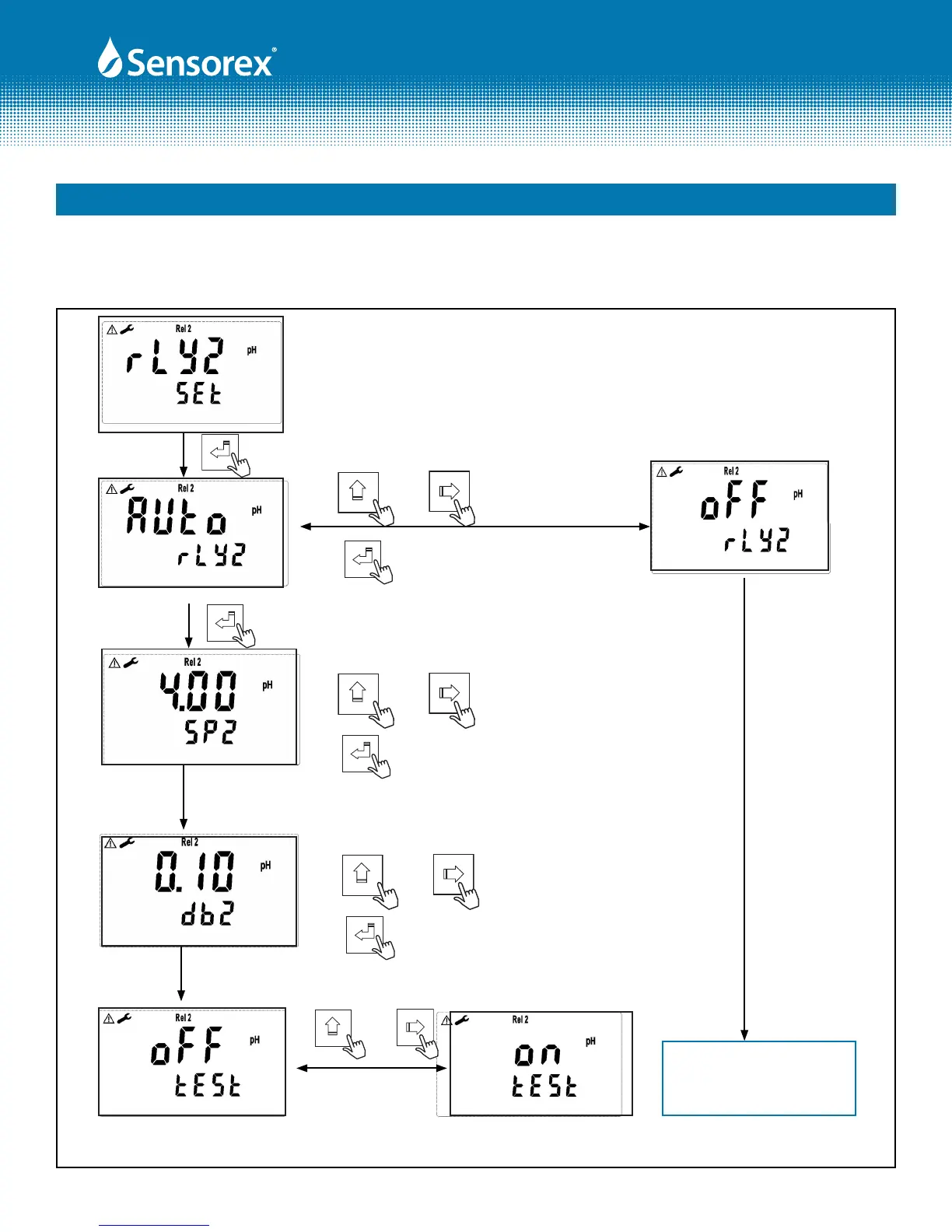 Set the TH (THRESHOLD) and DB (DEADBAND) of Lo (REL2). The range for TH is -2.00~16.00pH/-