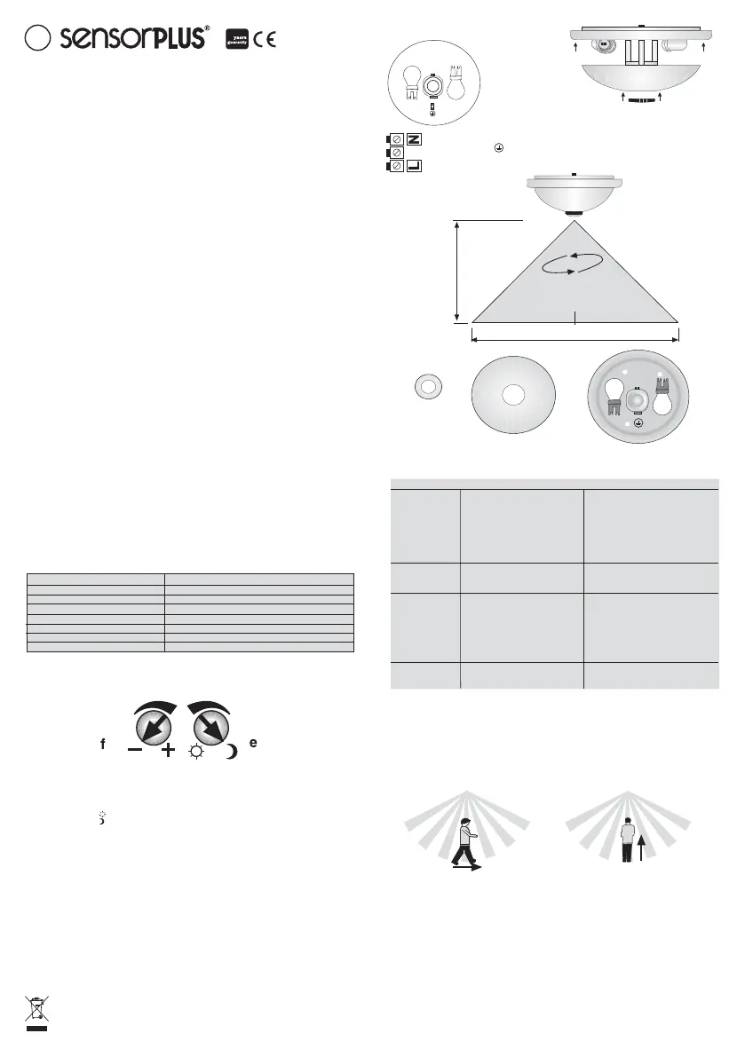 diminuire. L’ area di rilevamento dei sensori di movimento è di 9 m. di diametro e 4.5 m. di