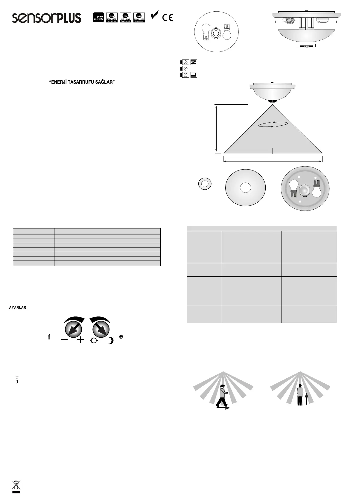 Hareket Sensörlü Tavan Armatürlerini kullanırken ürün etiketlerinde, ambalajlarında ve