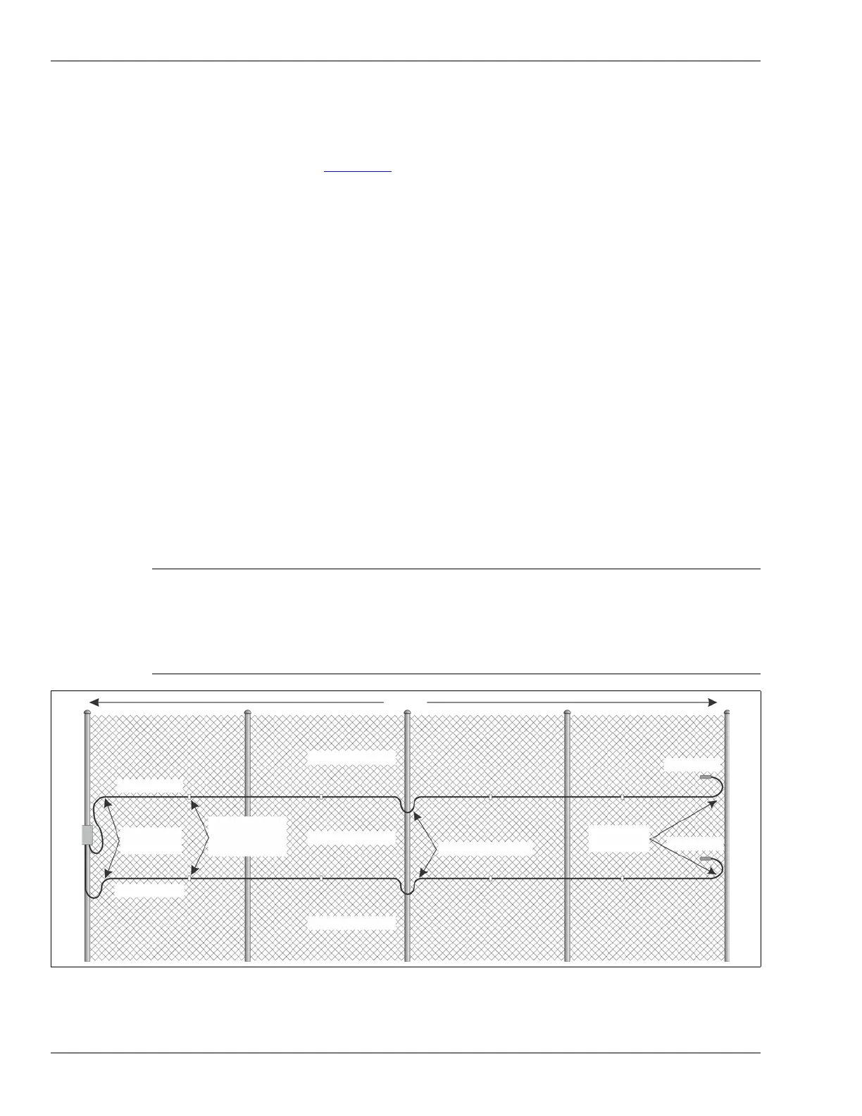 the fence in an upper and lower cable pass. The ends of the two sensor cables are terminated or