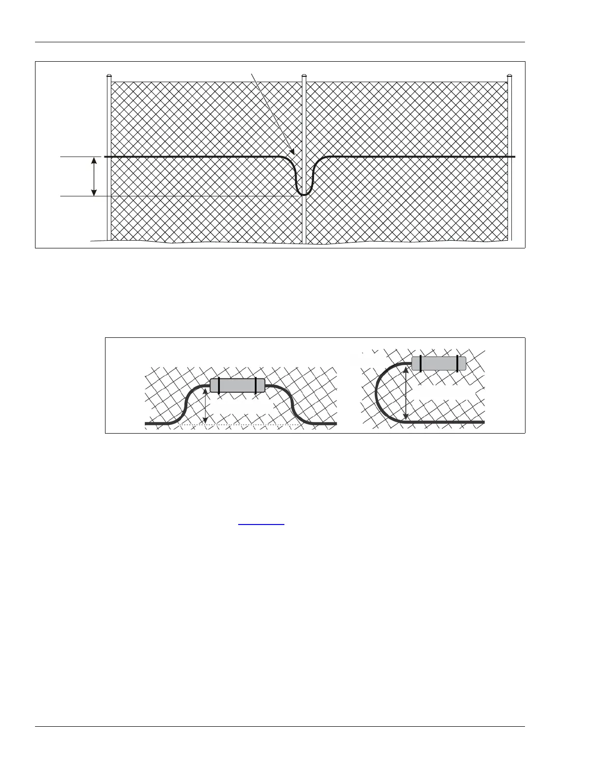 the level of the cable run before securing it, horizontally, to the fence fabric (15 cm {6 in.} for
