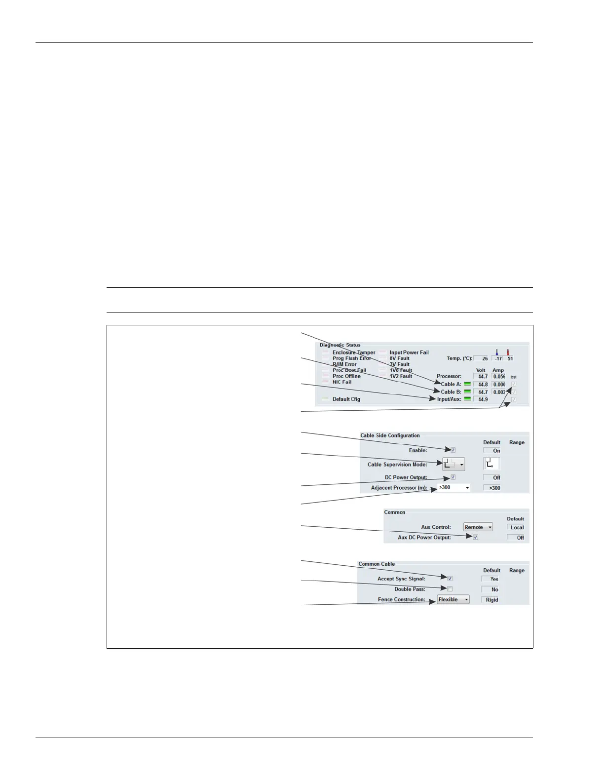 Figure 81: FlexZone power over sensor cable settings