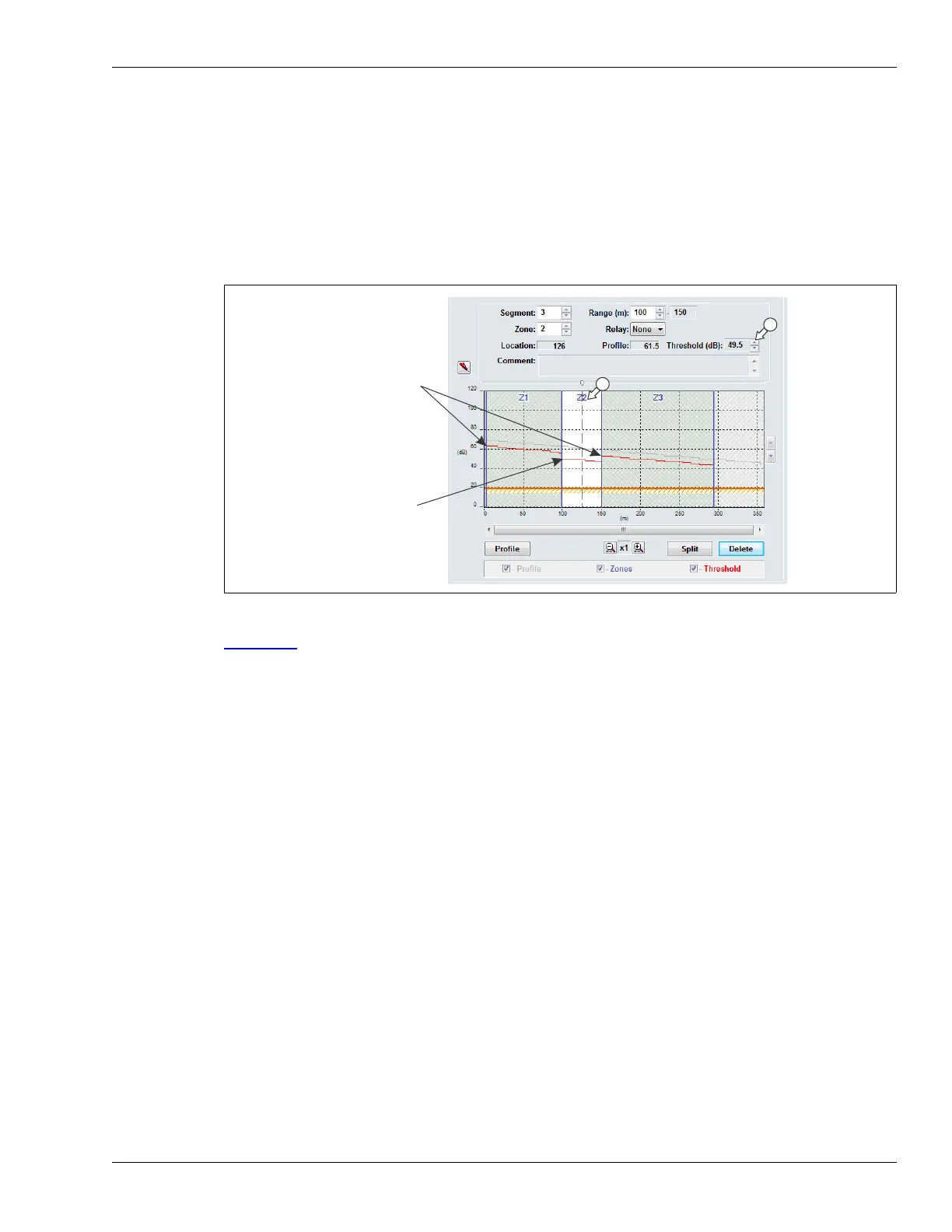 detecting cable. Segments 1 and 3 (Zones 1 and 3) use the globally set threshold of 6 dB below