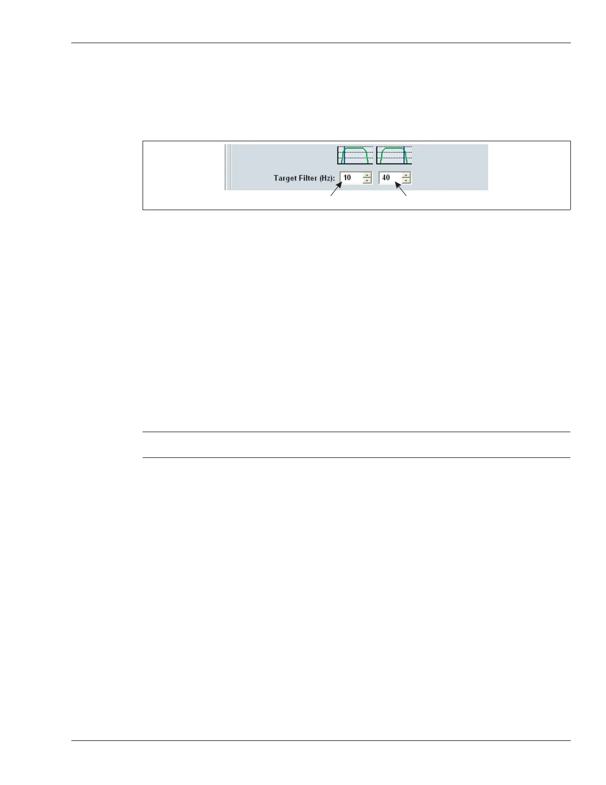 default value for the high pass filter is 10 Hz, the default value for the low pass filter is 40 Hz.