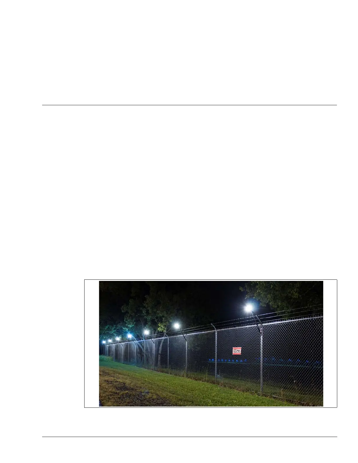 The Senstar LM100 luminaires are typically mounted on the perimeter fence, but can also be