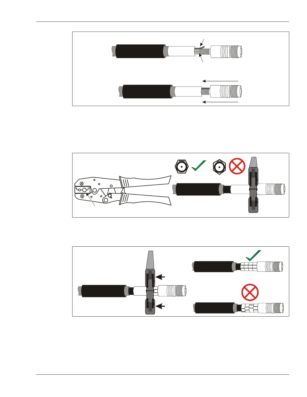press the connector shell onto the cable until the midsection is flush against the crimp ring