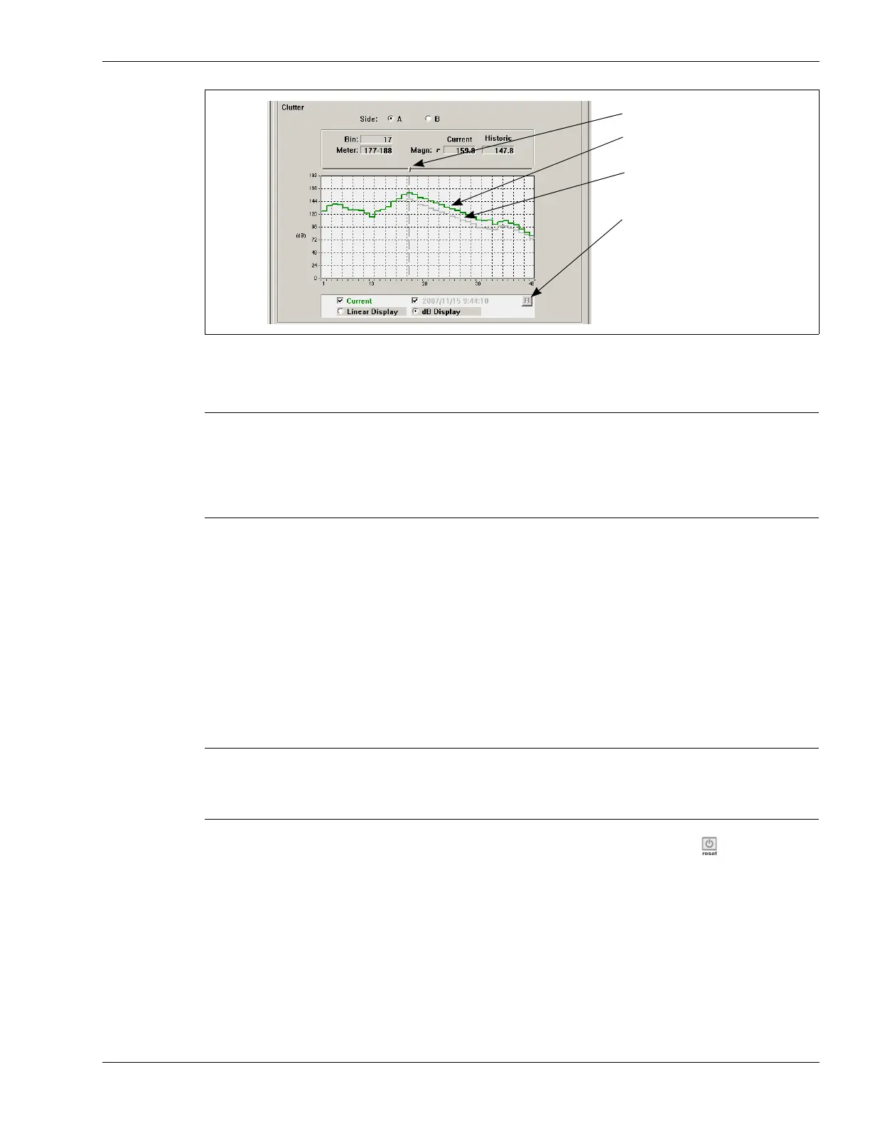 1. To save the current clutter level as the historic clutter level select the reset button located
