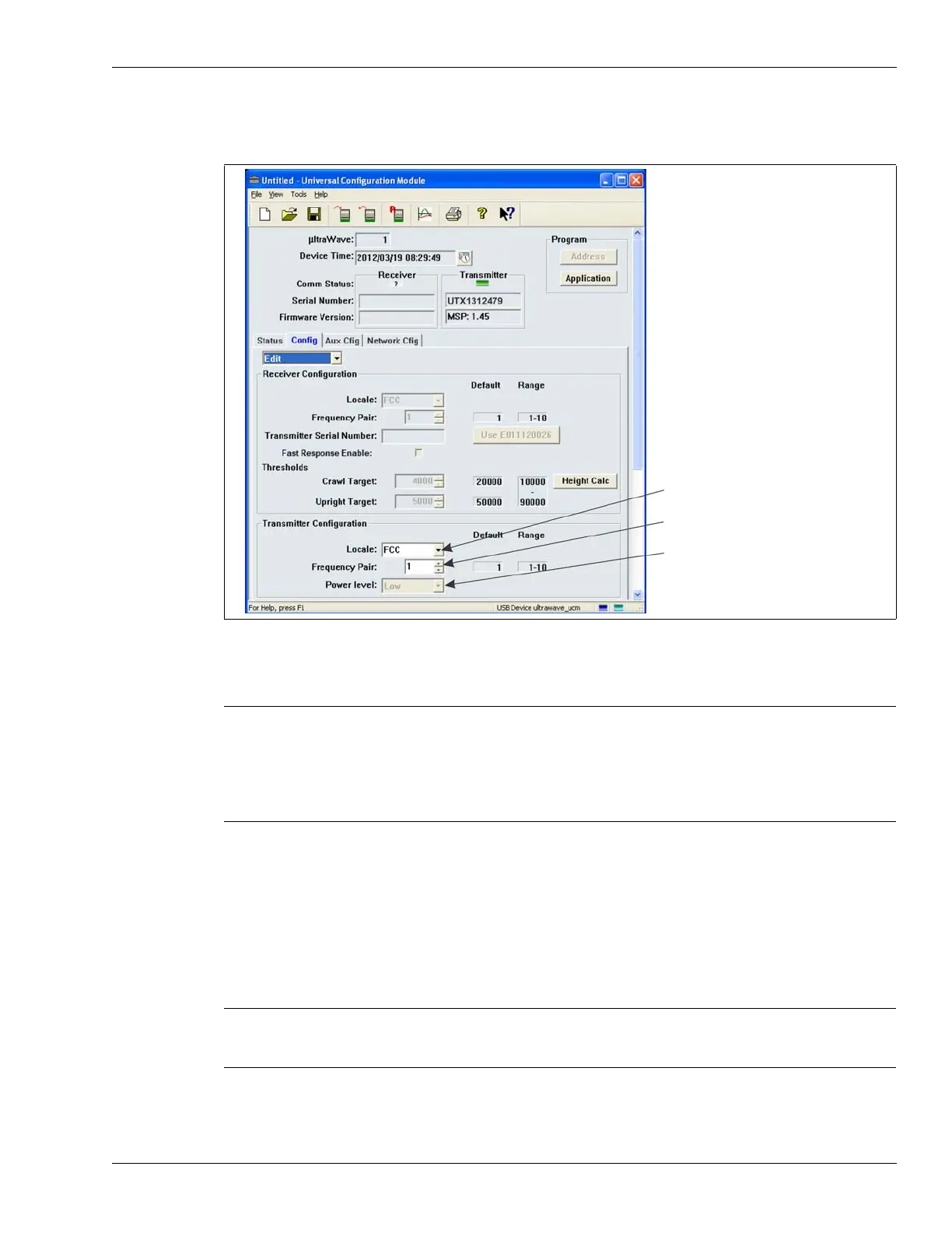 1. With the UCM connected to the transmitter unit, select the Config tab.