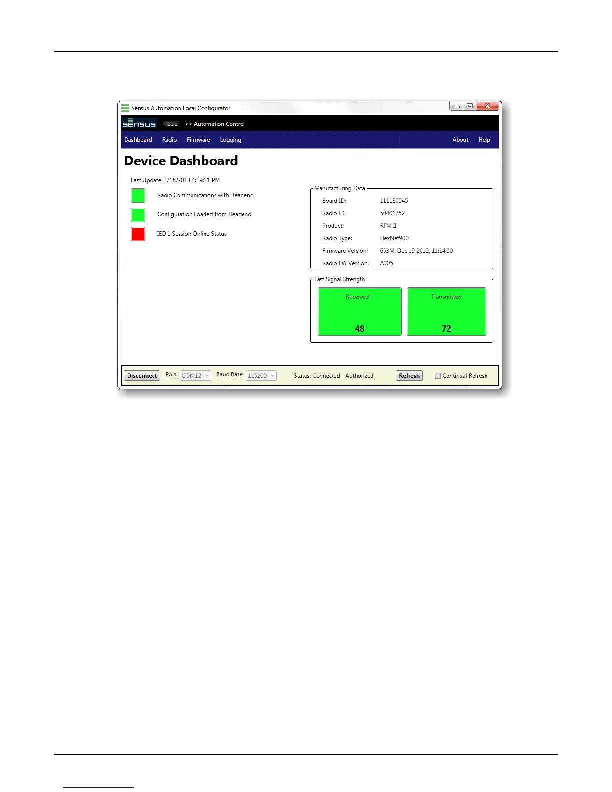 1. Radio Communications with AutomationControl: The Sensus device is not