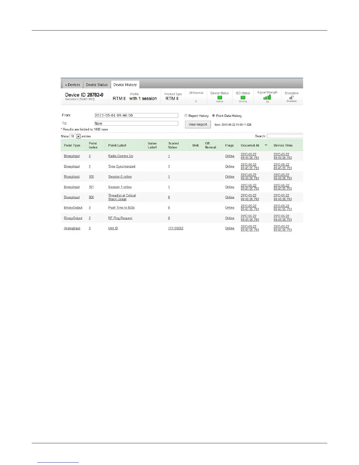 • SSI: Signal strength from the base station. A list of SSI ranges.