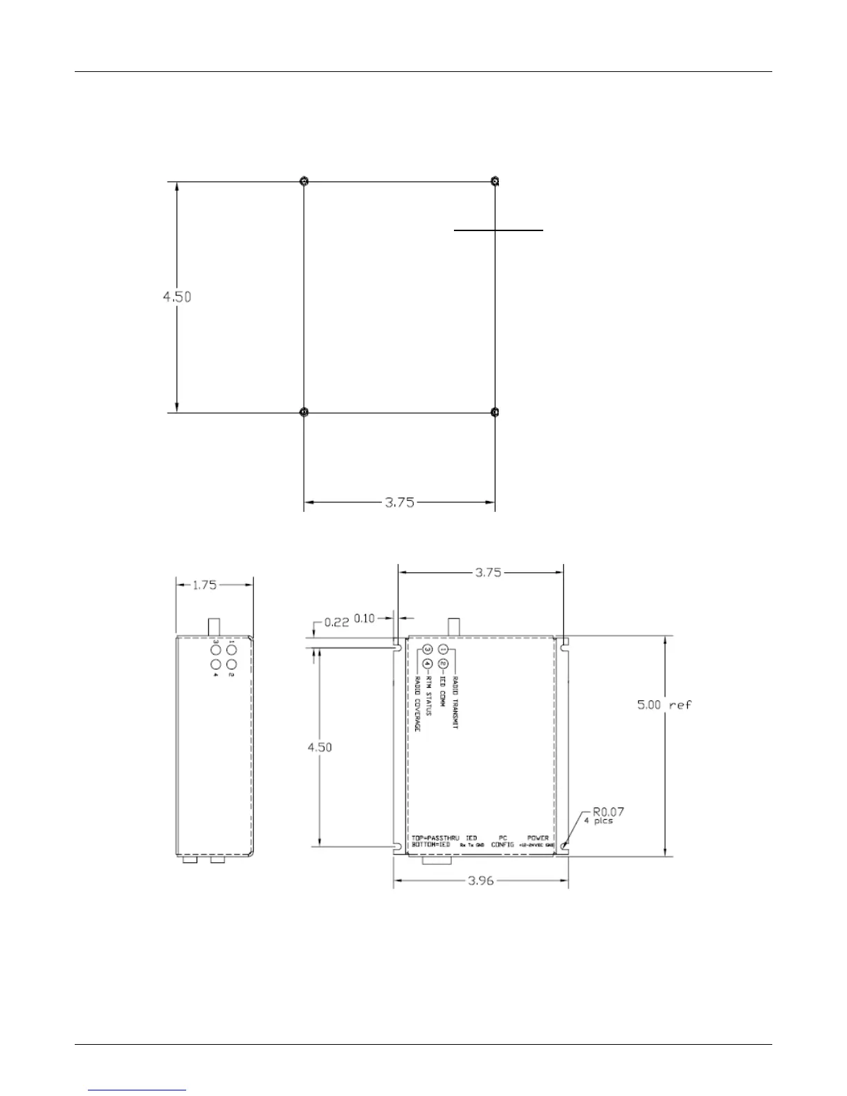 Below are drawings of the RTM II dimensions, connector locations, and a drill hole diagram.