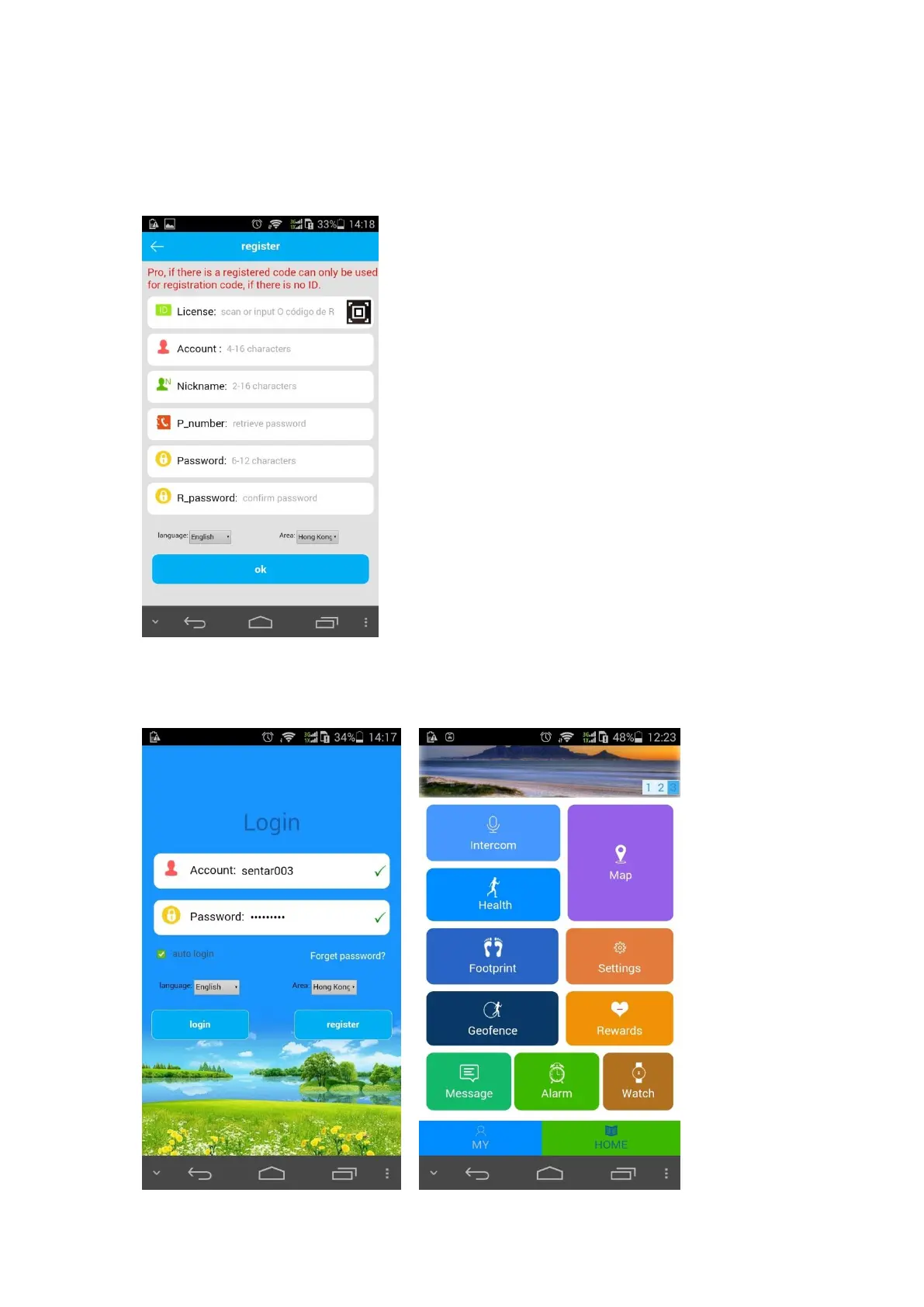registration page. Input the watch ID, APP account name, device nick name, parent phone