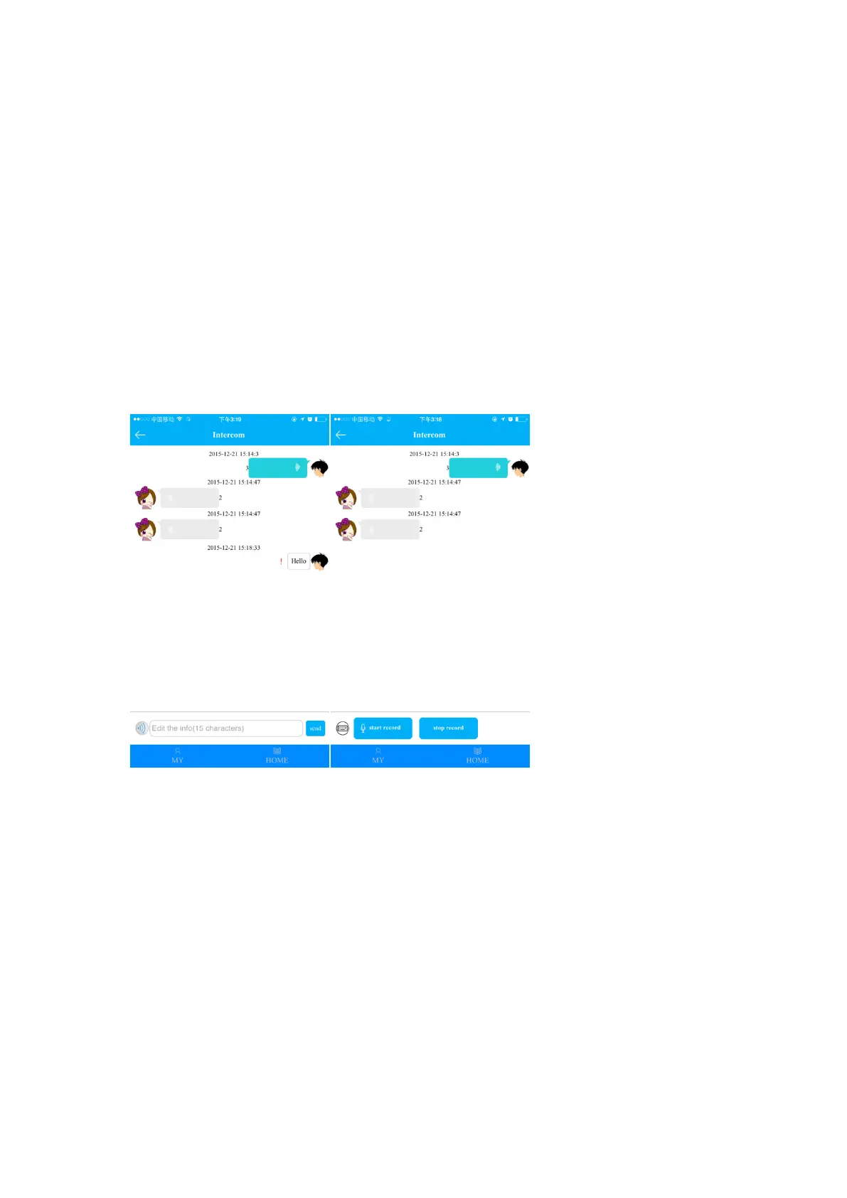 4.2.1. Intercom: two way voice message (max 15s) and one way text message (Max 15