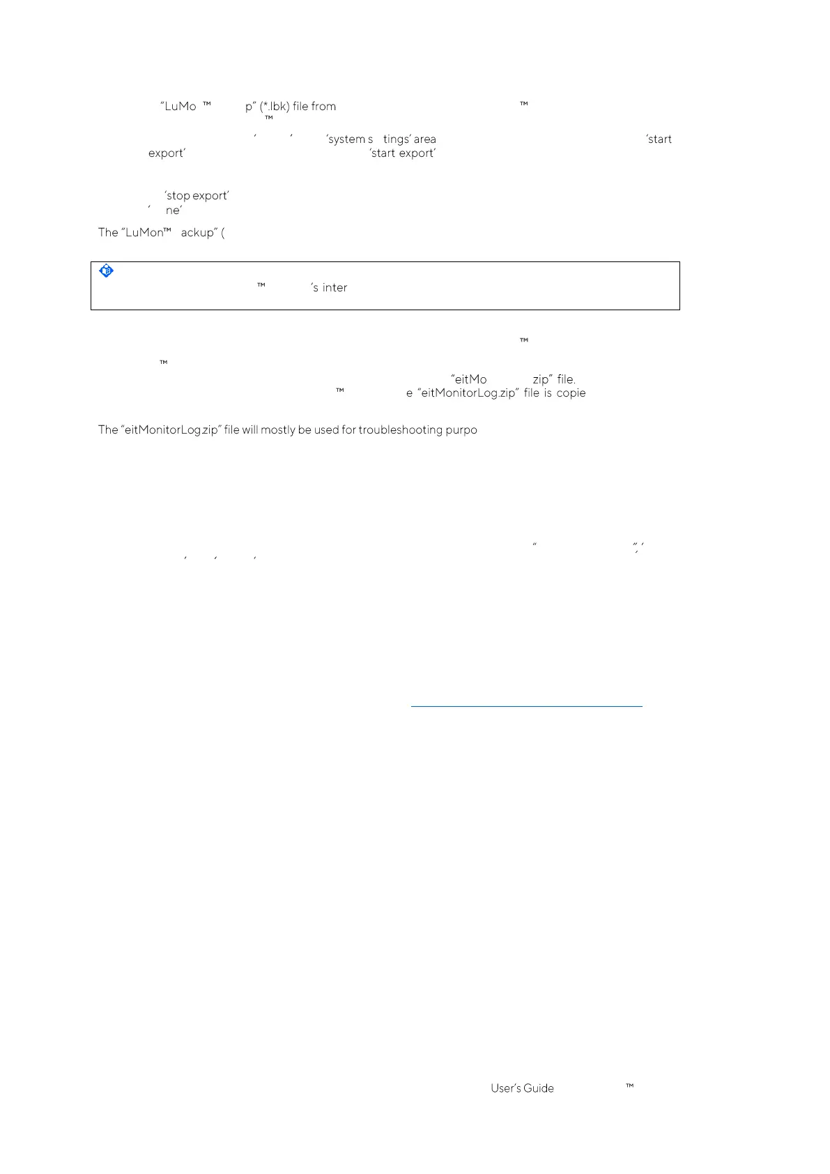 To export a n backu the internal memory of the LuMon Monitor on a USB memory