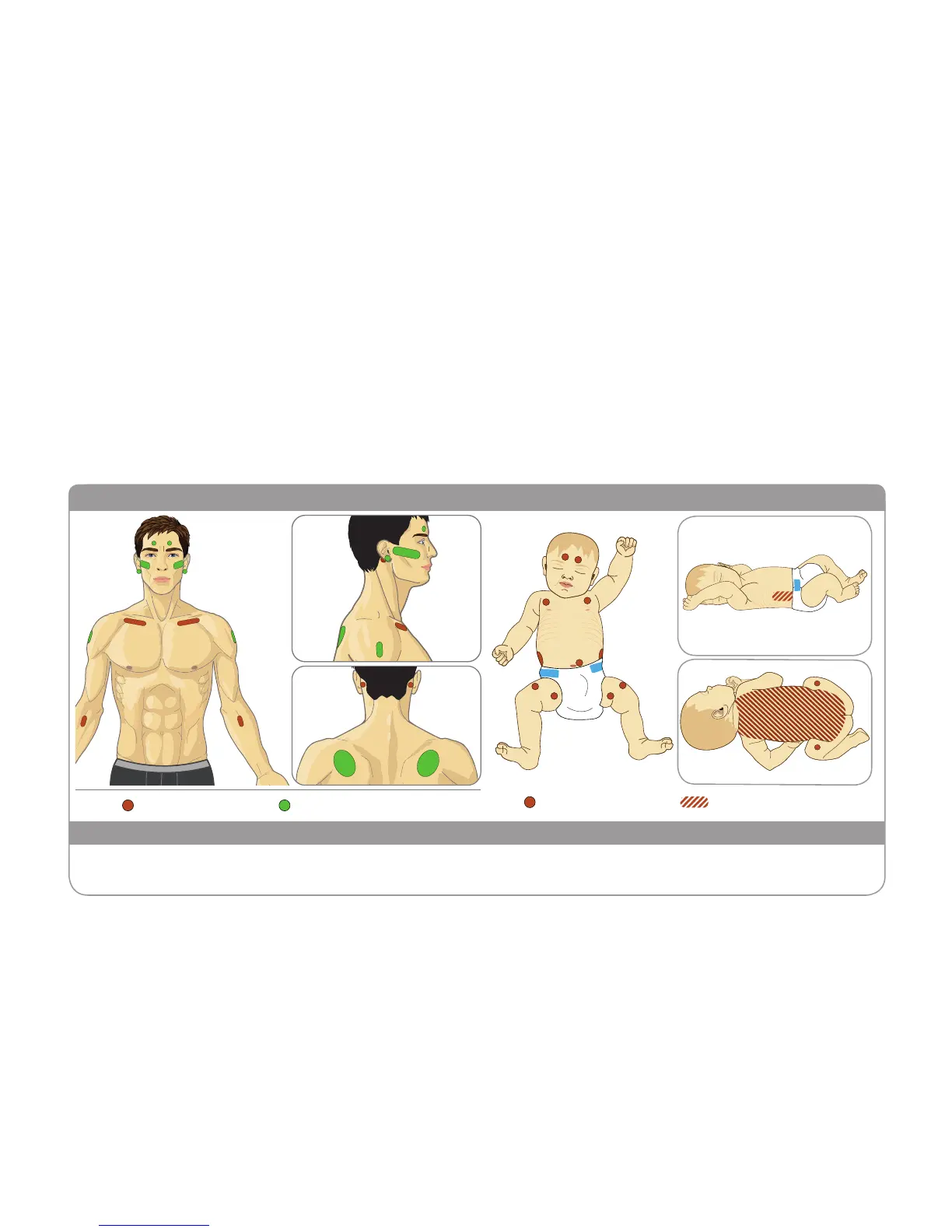 Refer to the pictures below to select the patient type on the SDM, the measurement site and the sensor attachment accessory.